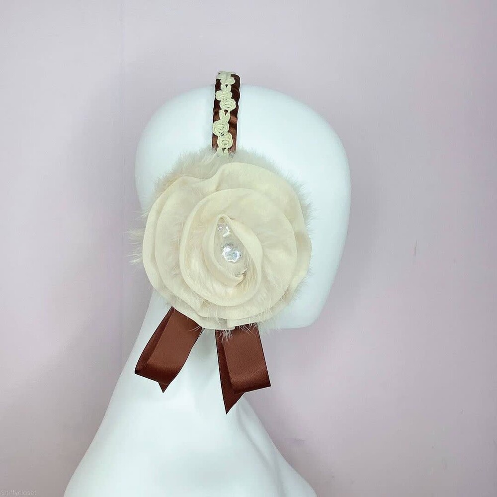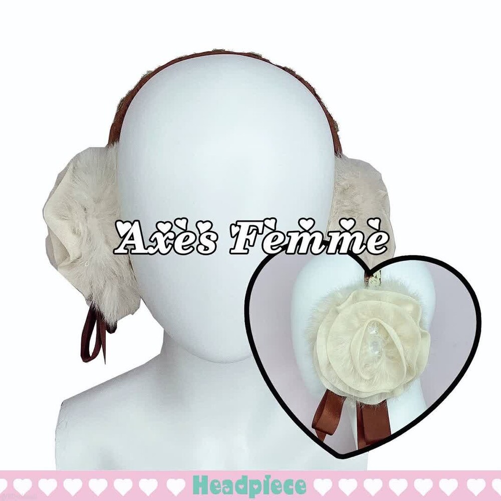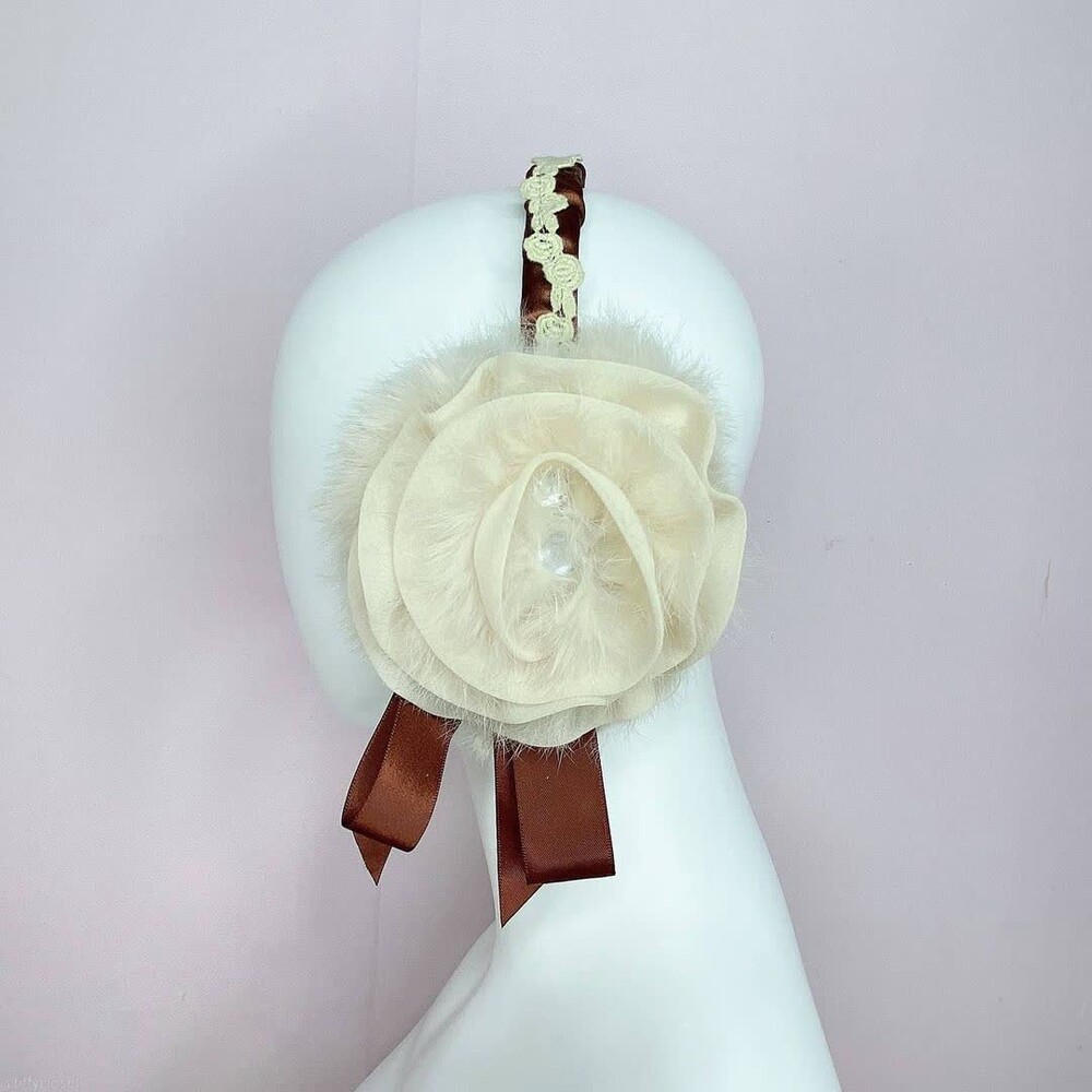 ♡Details 앤틱한 디자인이 많은 브랜드 Axes Femme의 디테일이 가득한 좋은 퀄리티의 이어머프예요. 브라운 컬러의 새틴 헤어밴드에 로즈 코튼 레이스가 붙어있어 머리 윗부분도 여성스럽게 연출되구요, 보들보들 촉감이 너무 좋은 래빗 퍼 이어머프에 오간자로 장미모양의 프릴이 잡혀있어 고급스럽고 예뻐요. 장미 가운데는 반짝이는 스톤 장식이 있고 장미모양 이어머프 밑부분으로 새틴 리본이 마치 부케 같이 내려오는 디자인으로 로맨틱해요. 컬러감이나 소재가 고급스러워서 어른스러운 코디에도 잘 어울립니다. 상태도 아주 좋아요.