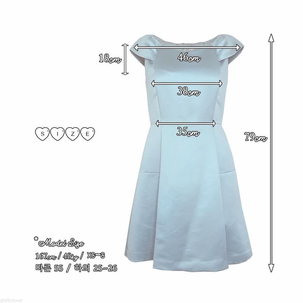 이 드레스는 뒷모습이 인상적인데, 허리 부분에 같은 원단으로 리본 모양으로 주름이 잡혀 있어요. 이 리본이 너무너무 사랑스럽답니다. 컬러와 원단이 너무 예쁘고 고급스러워서 간단한 파티나 중요한 자리에도 추천드려요. 55 사이즈까지 잘 맞을 것 같습니다.