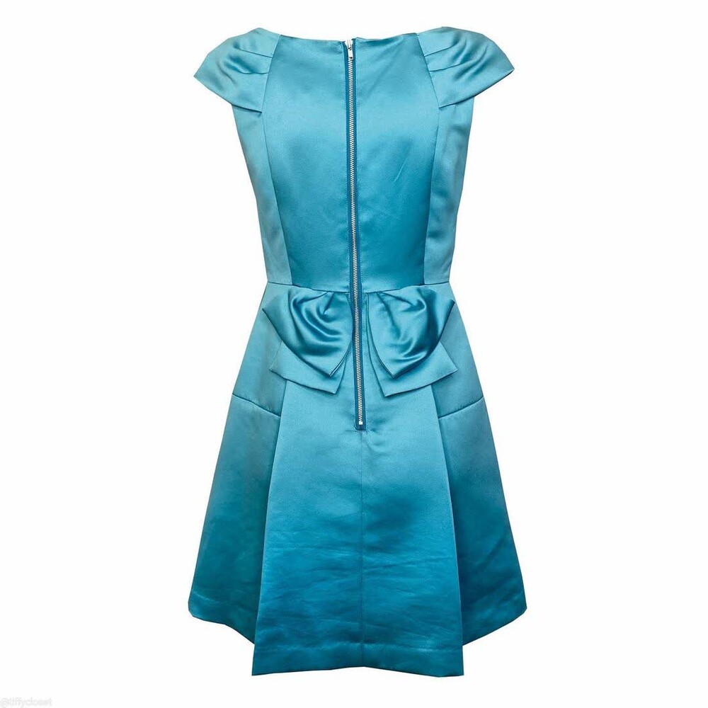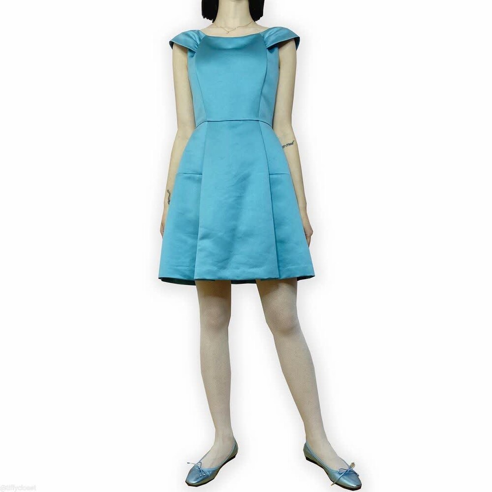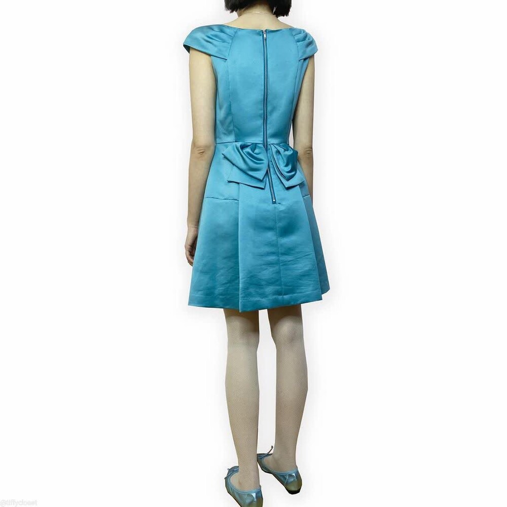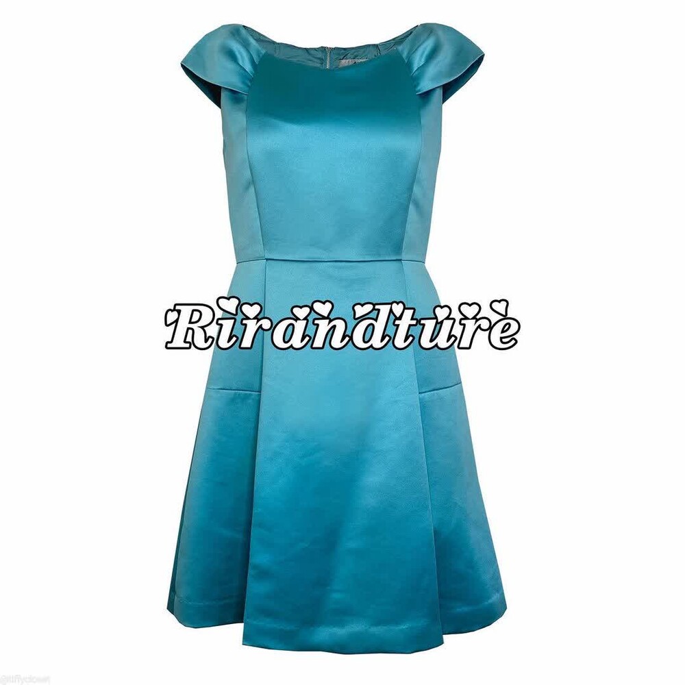 에메랄드빛 블루 컬러에 광택이 너무나도 아름다운 드레스예요. 약간 넓은 보트넥 같은 넥라인에 두꺼운 원단으로 어깨에 예쁜 주름이 잡힌 짧은 프렌치슬리브 같은 디자인이 더욱 파티 분위기에 어울려요. 앞면에도 바스트 부분부터 끝단까지 예쁘게 핀턱 주름이 들어가서 몸매도 아름답게 보이고 더욱 고급스러워요.