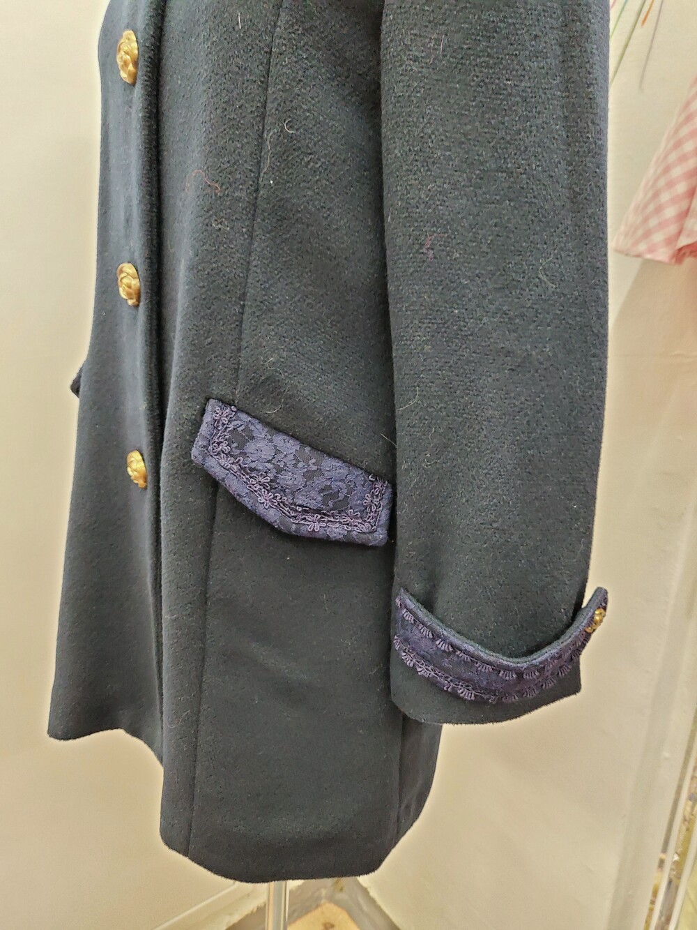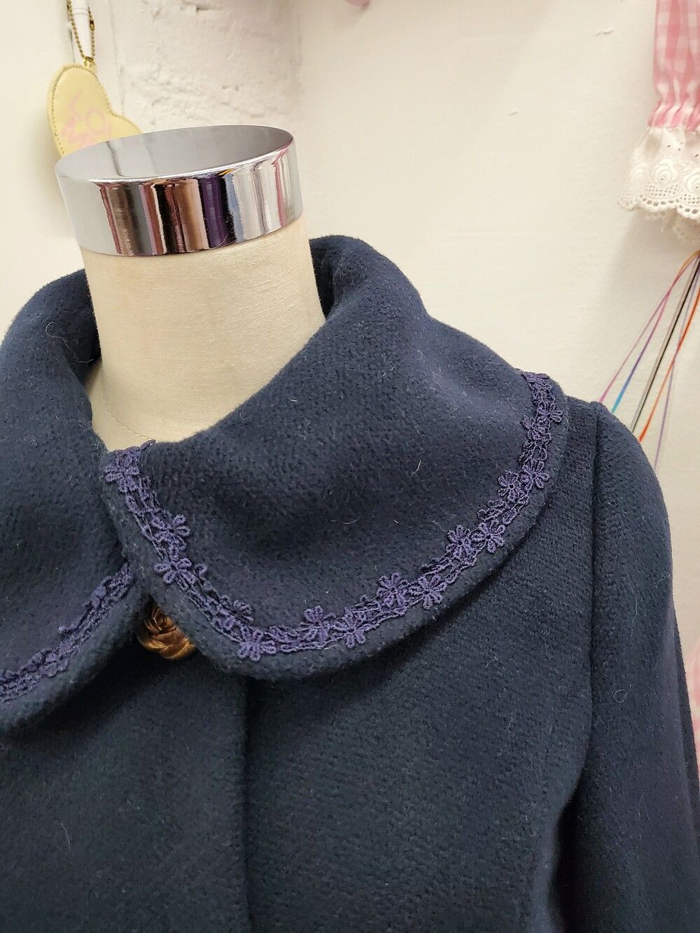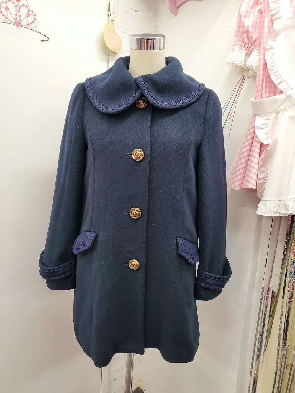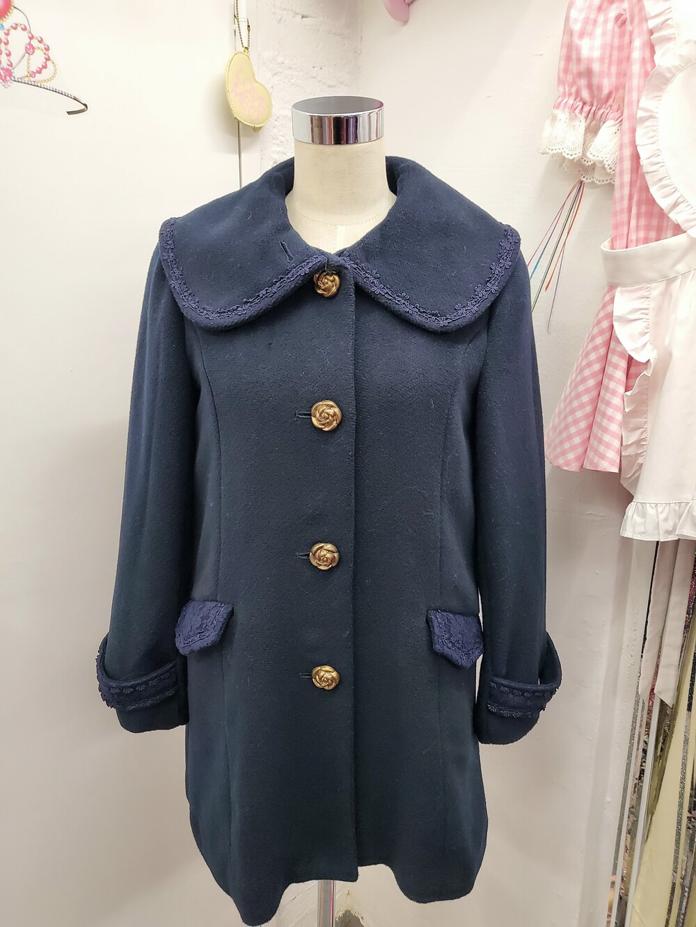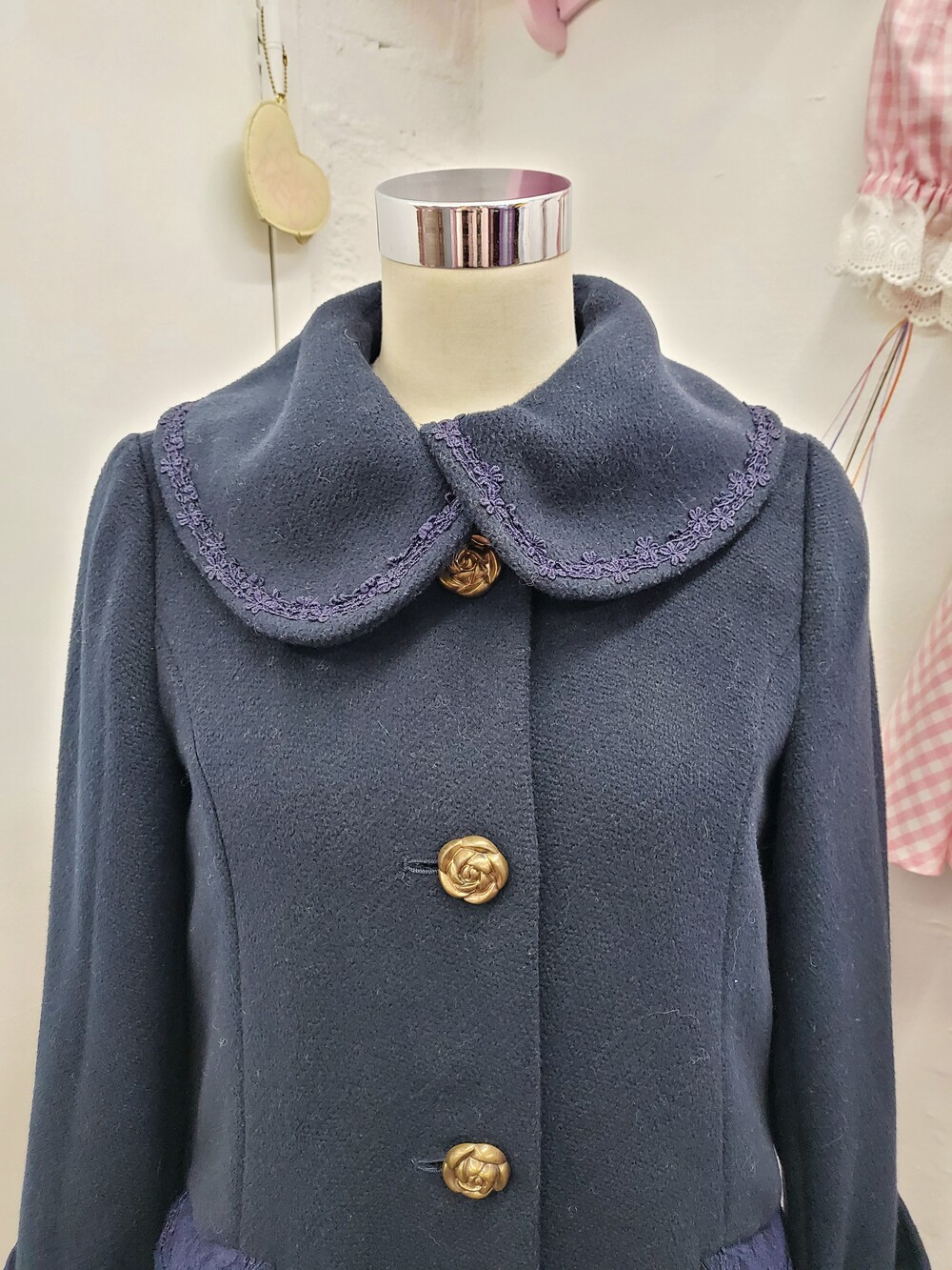 가벼운 싱글 코트에 넓은 카라, 레이스 디테일과 골드 장미 버튼이 포인트인 액시즈팜 코트예요💛