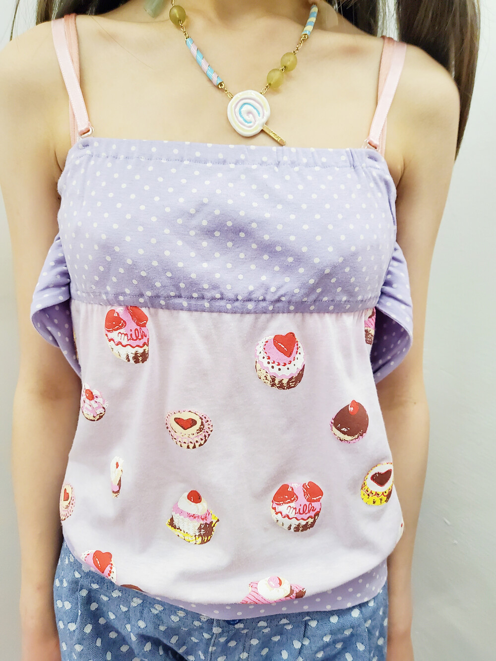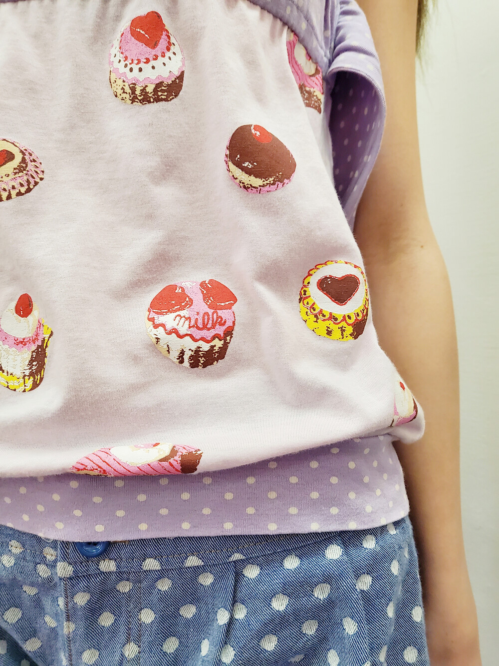 귀여운 컵케익 프린트와 도트패턴의 믹스💜