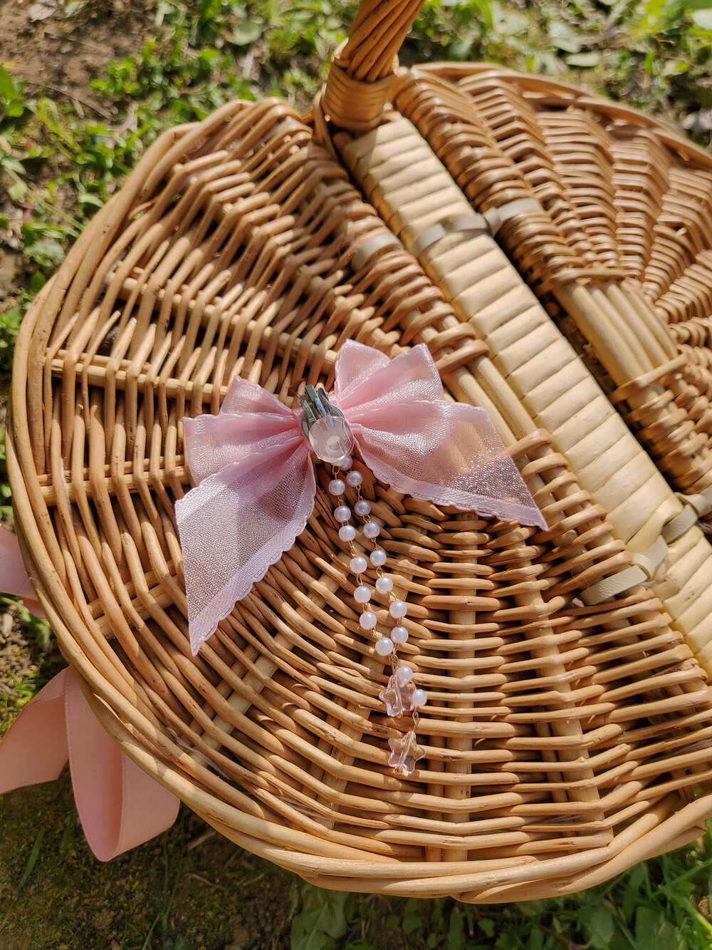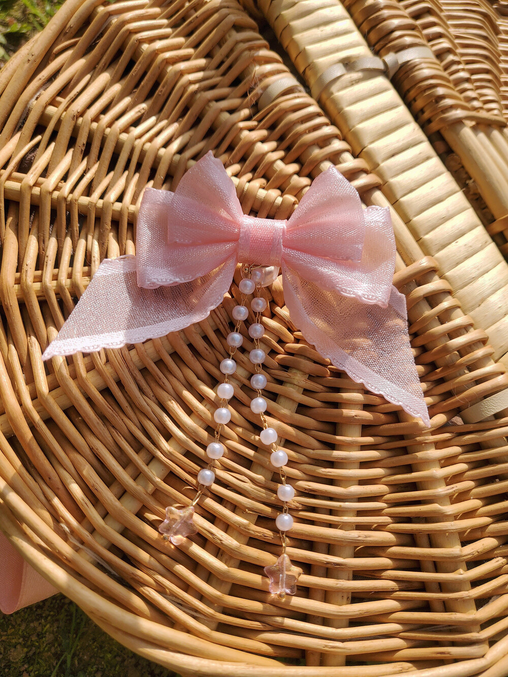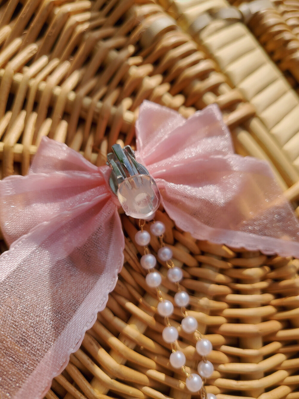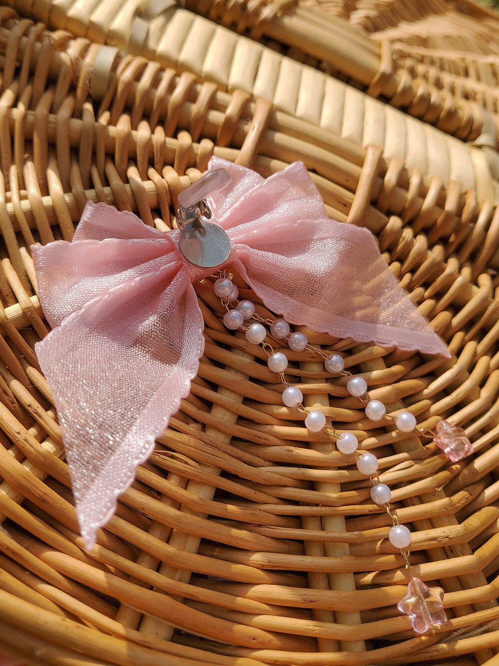 반짝반짝 귀여운 진주와 별이 달려있는 컷팅이 예쁘고 사랑스러운 리본 클립입니다♡