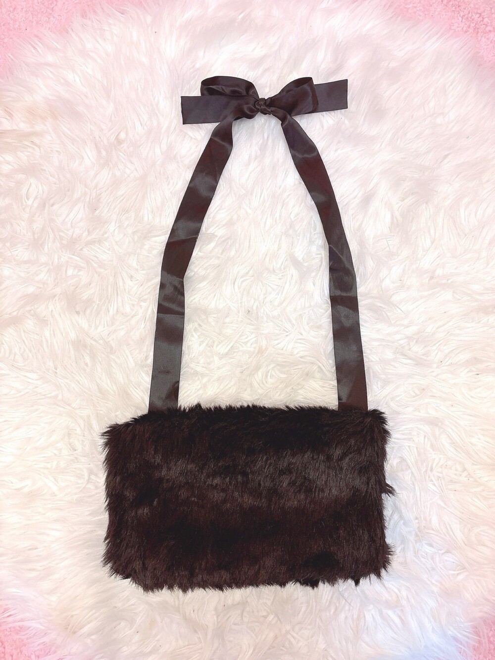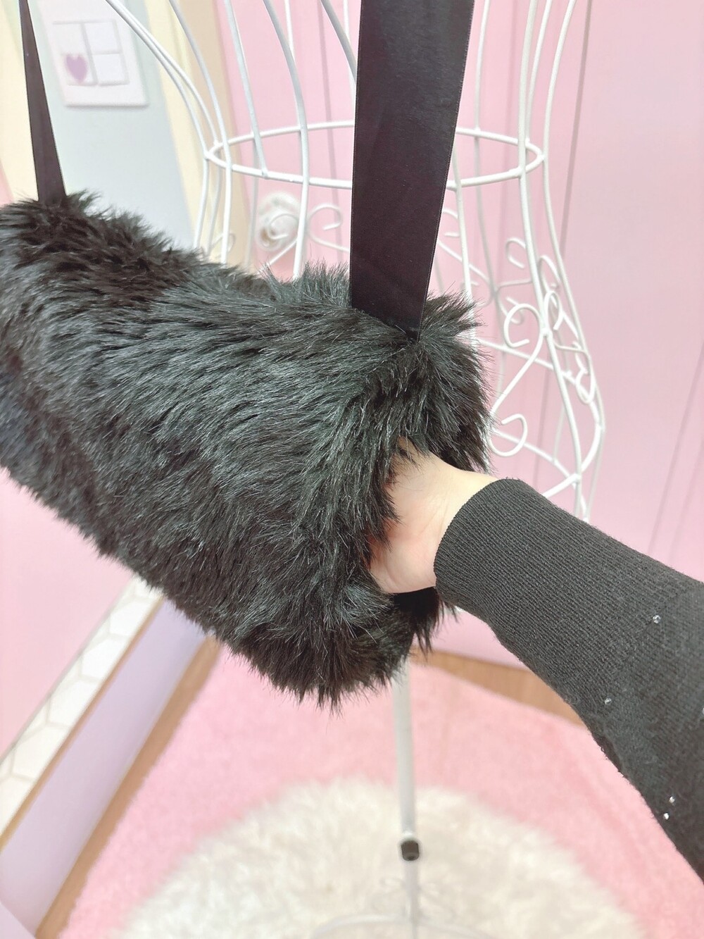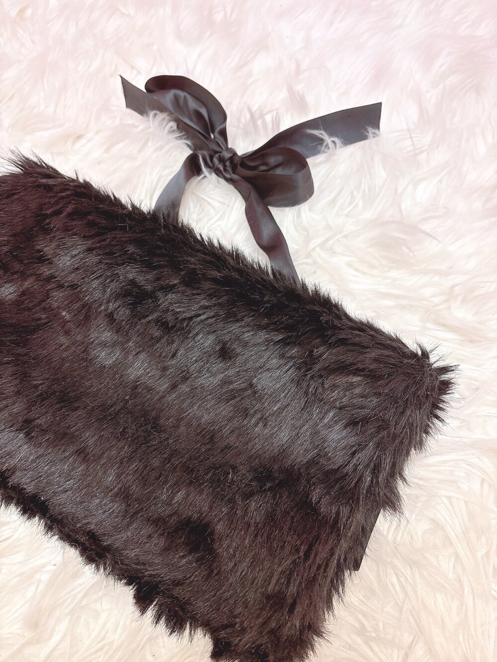 Black ribbon fur hand warmer muffler bag