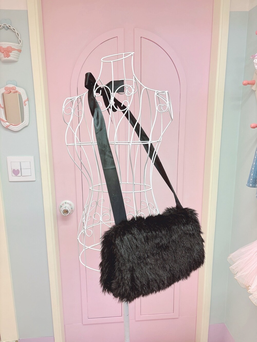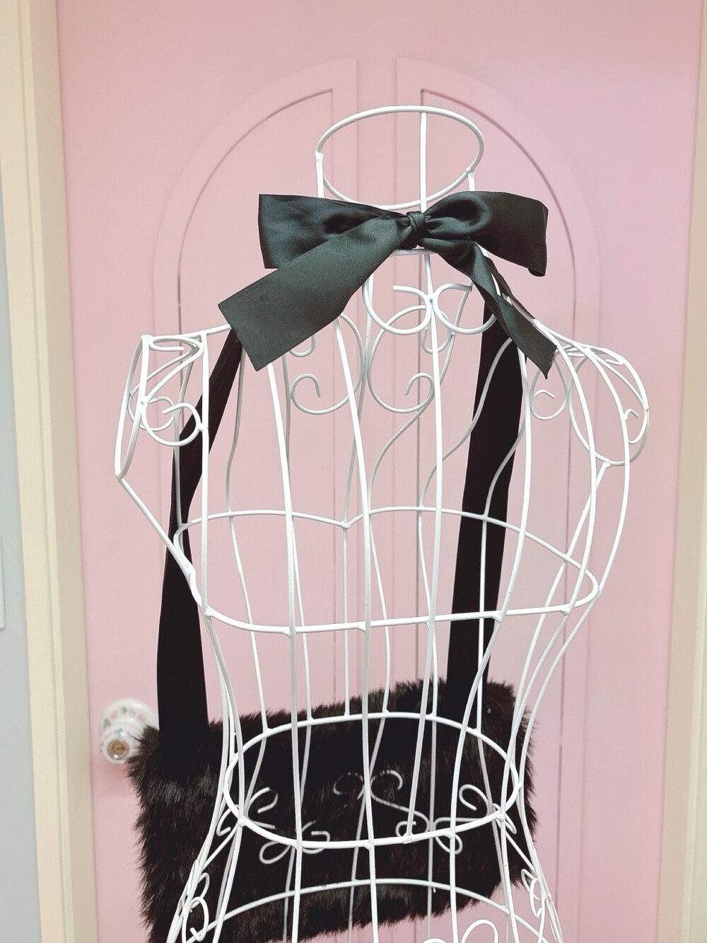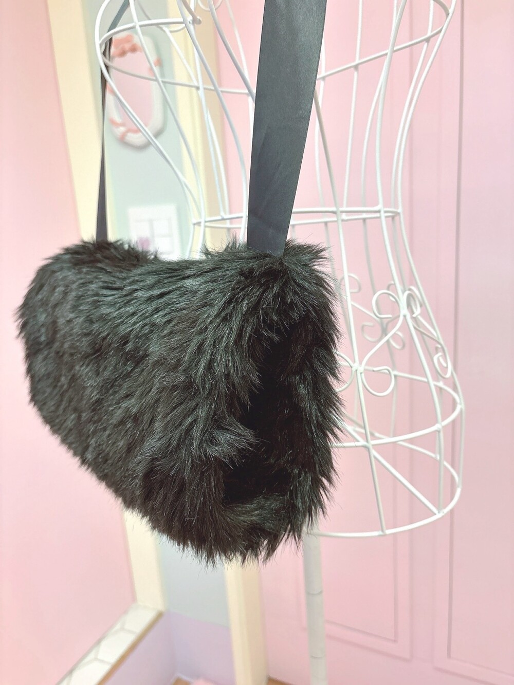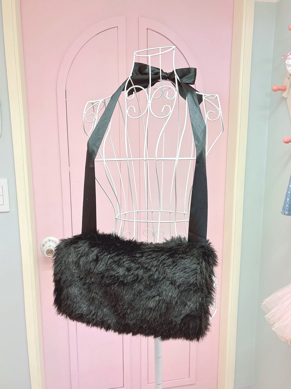 Black ribbon fur hand warmer muffler bag
