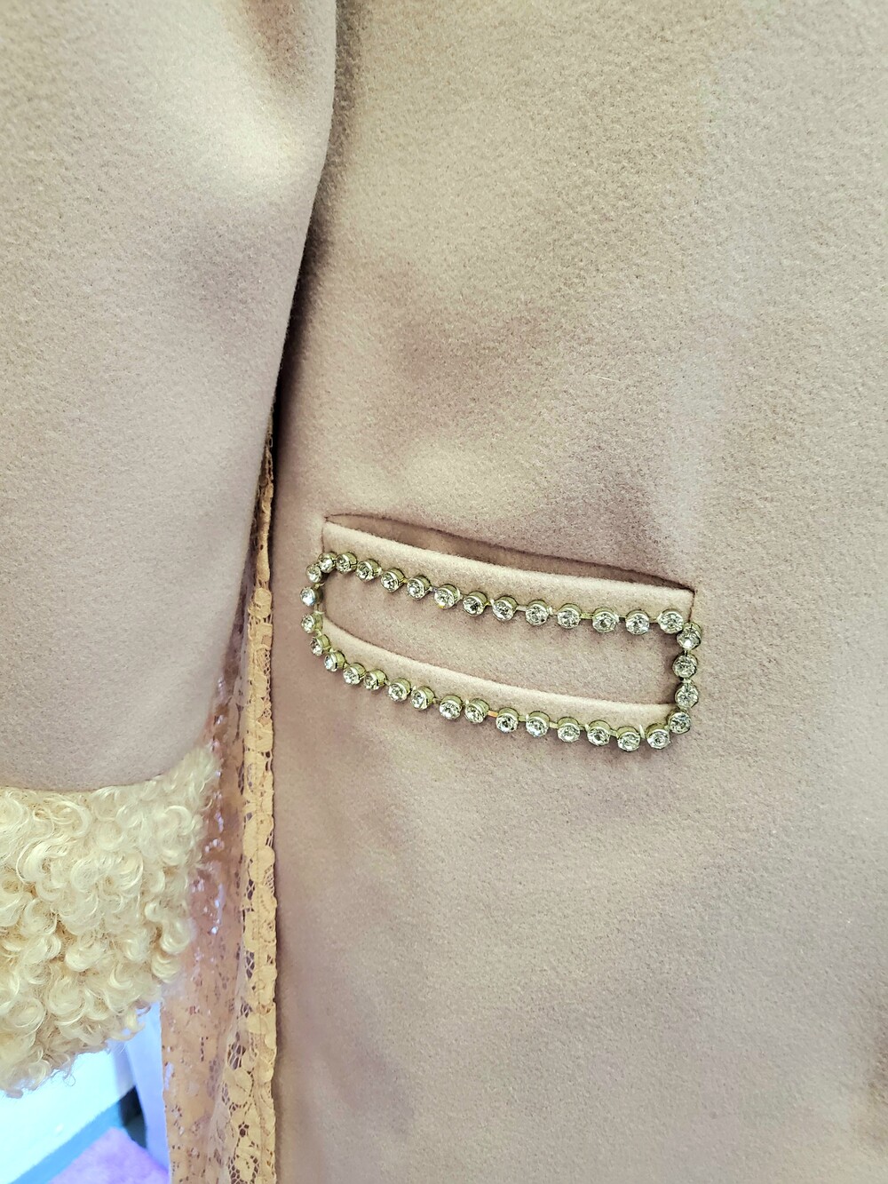 포켓부분의 큐빅 장식과 날개같이 드레시한