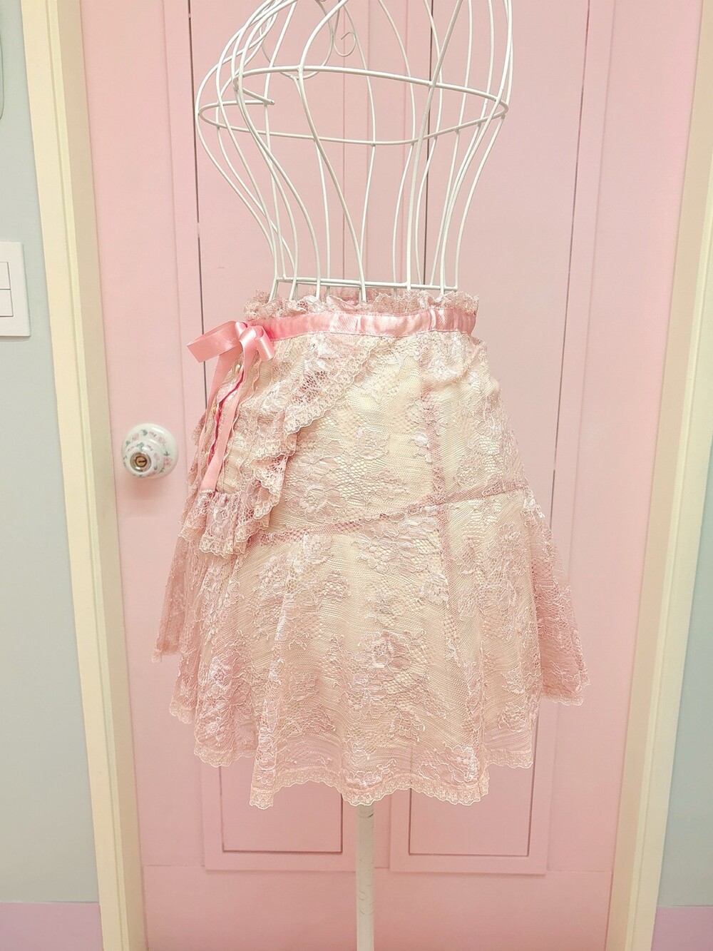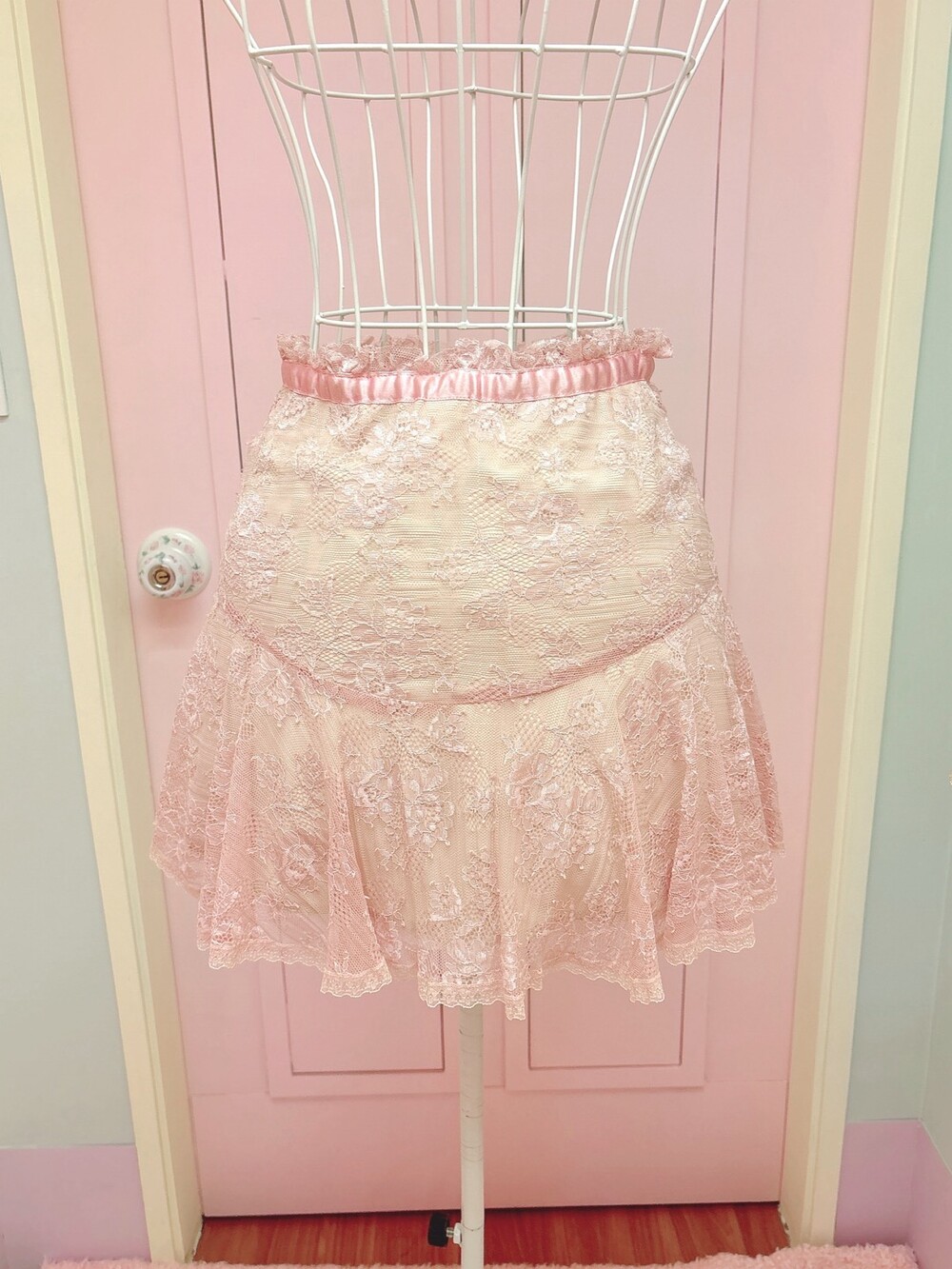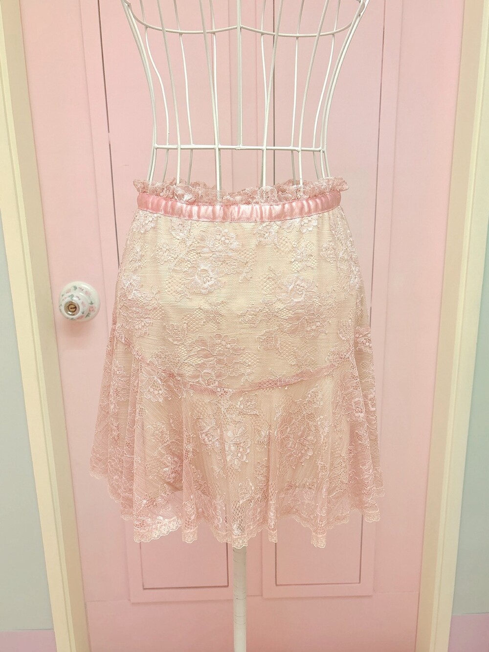 여리여리 차분한 핑크 컬러의 레이스 프릴 스커트!