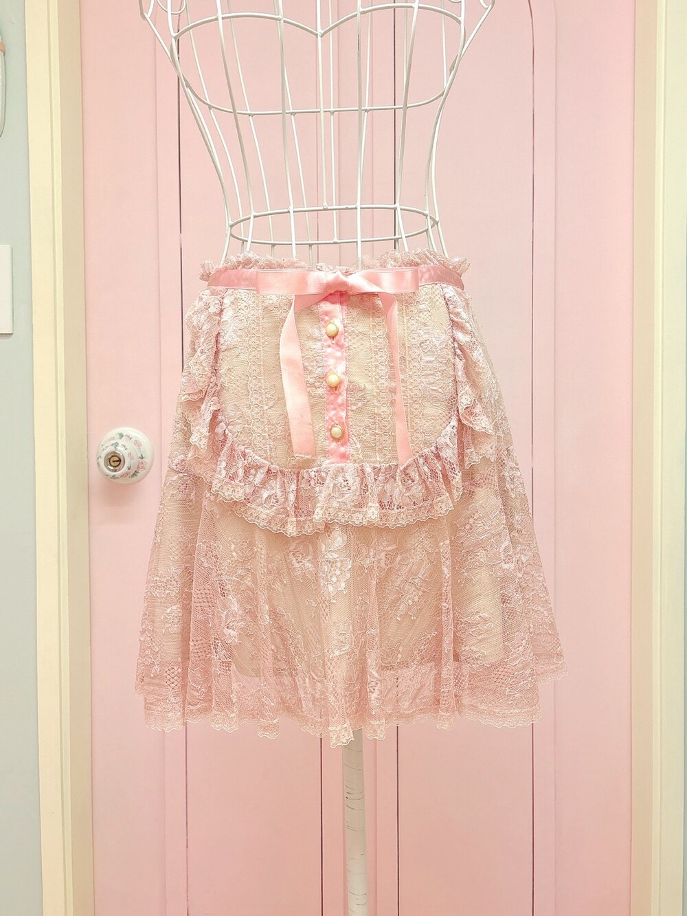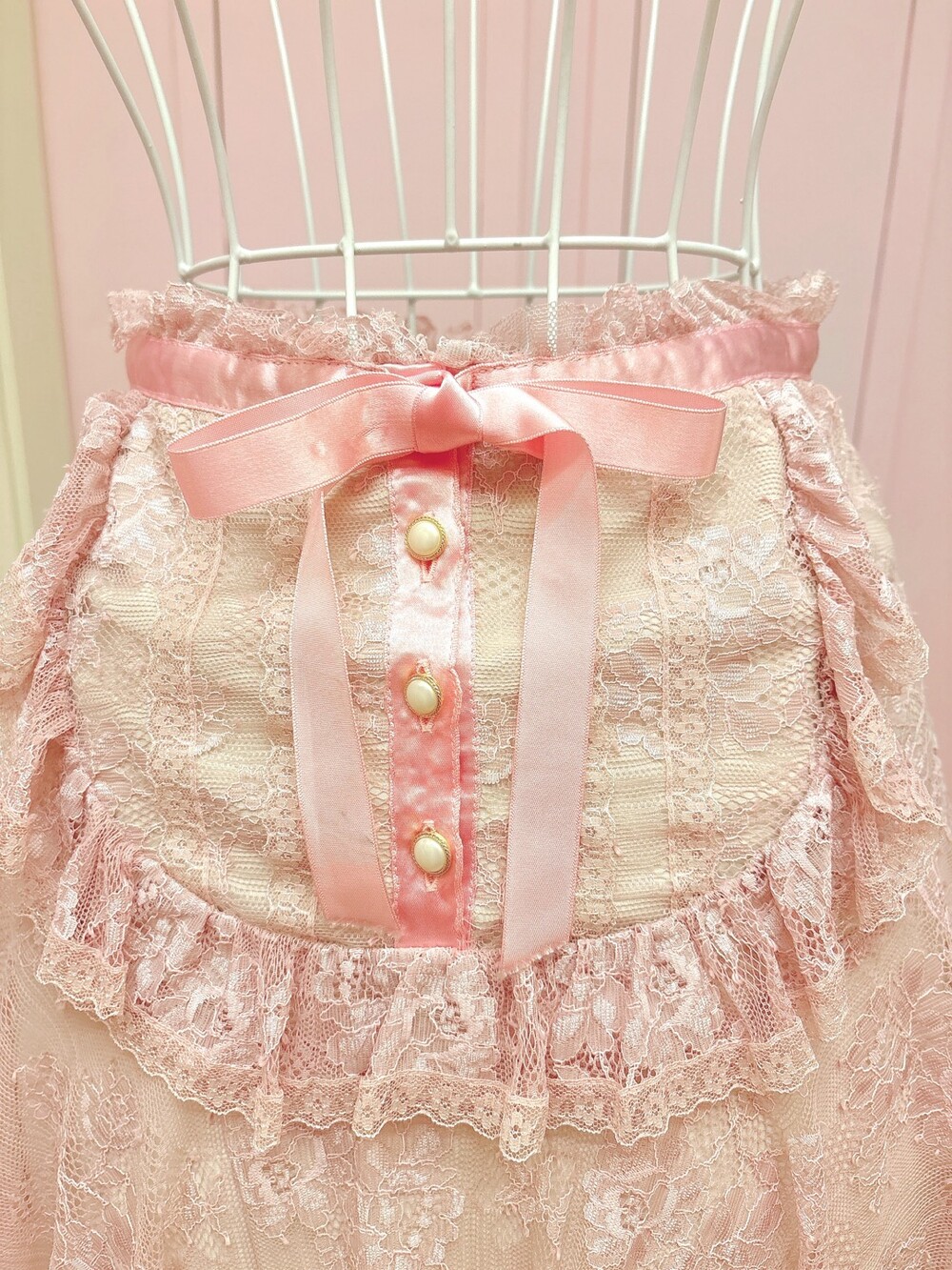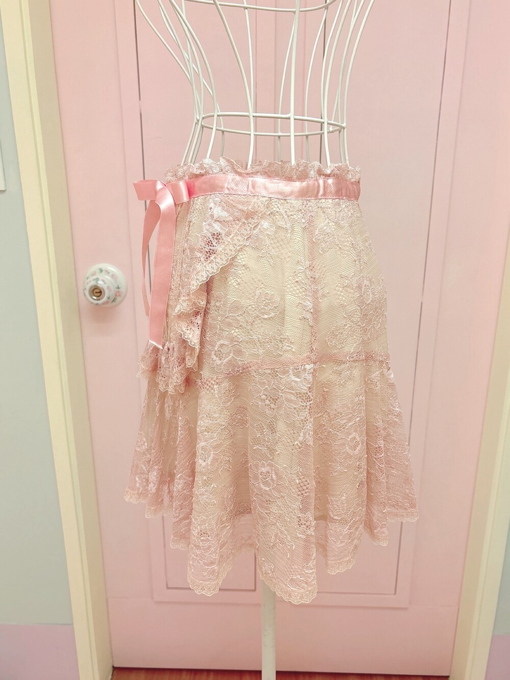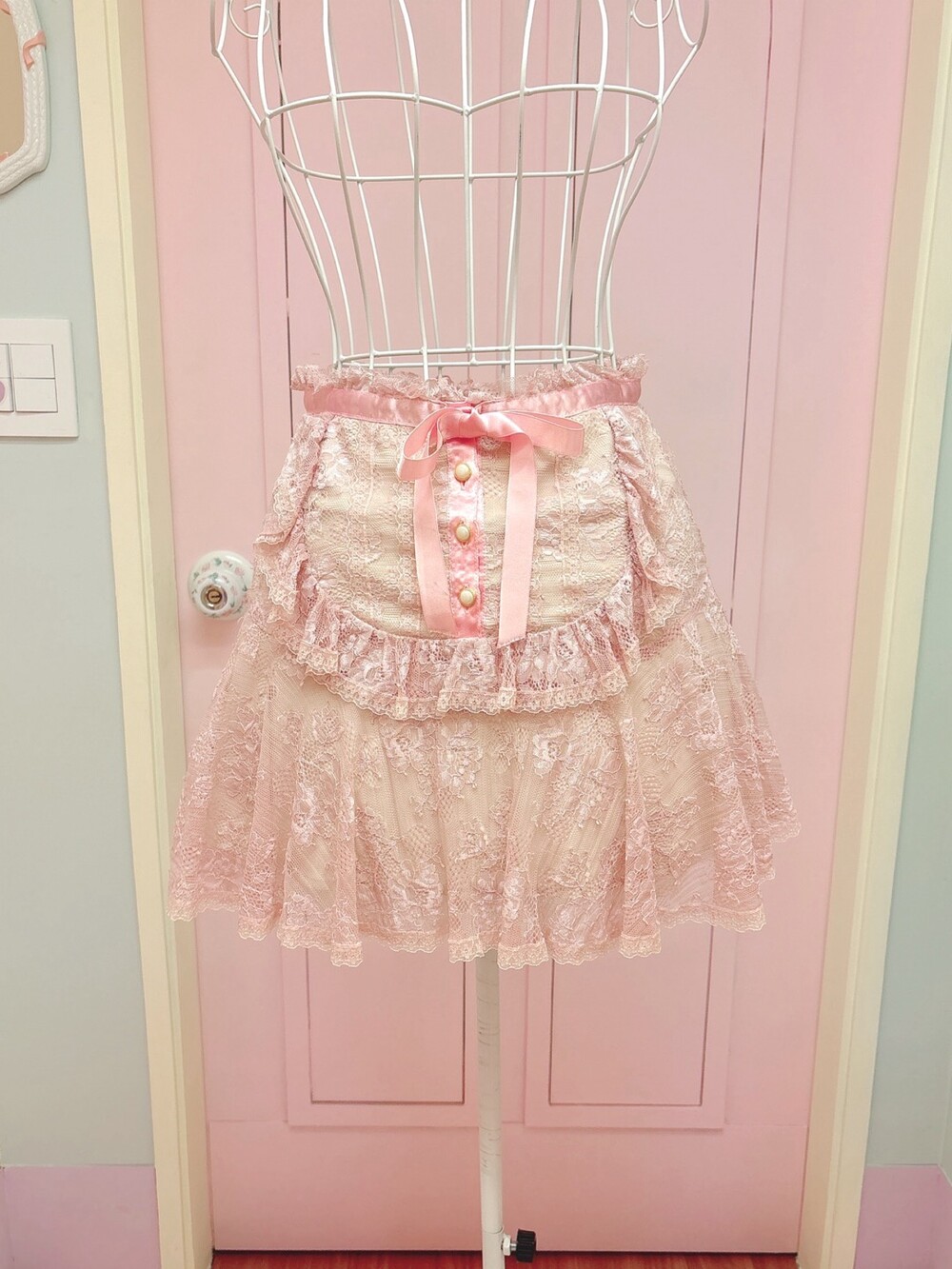 여리여리 차분한 핑크 컬러의 레이스 프릴 스커트!