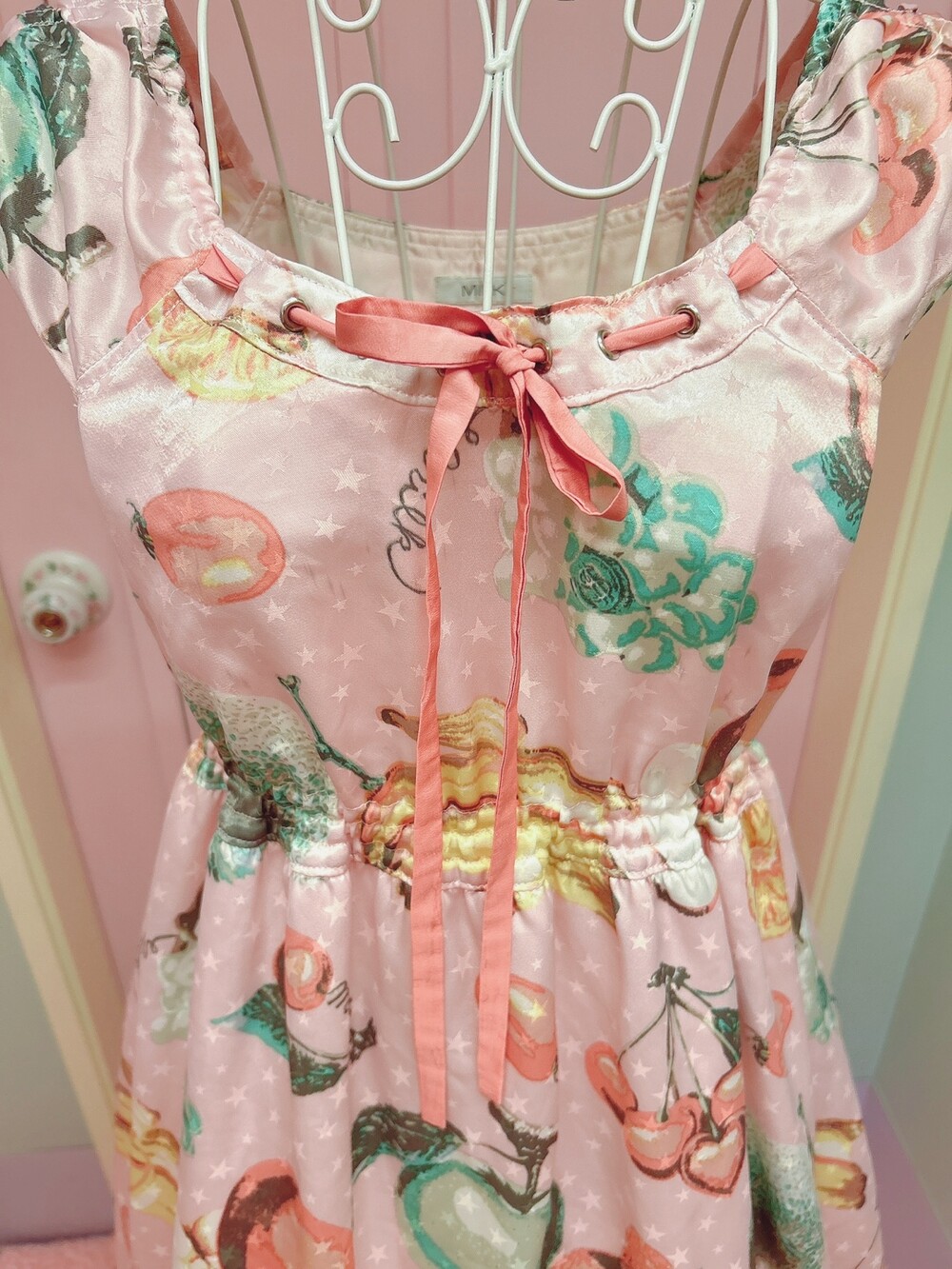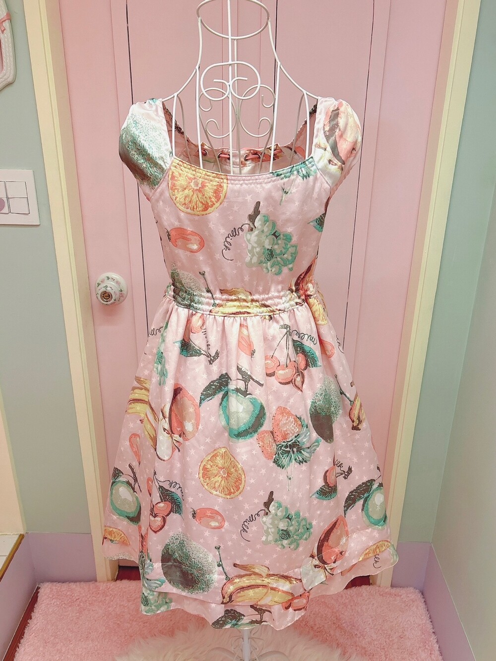 여름에 입기 좋은 시원한 느낌의쥬시 과일 프린팅의 밀크 드레스!