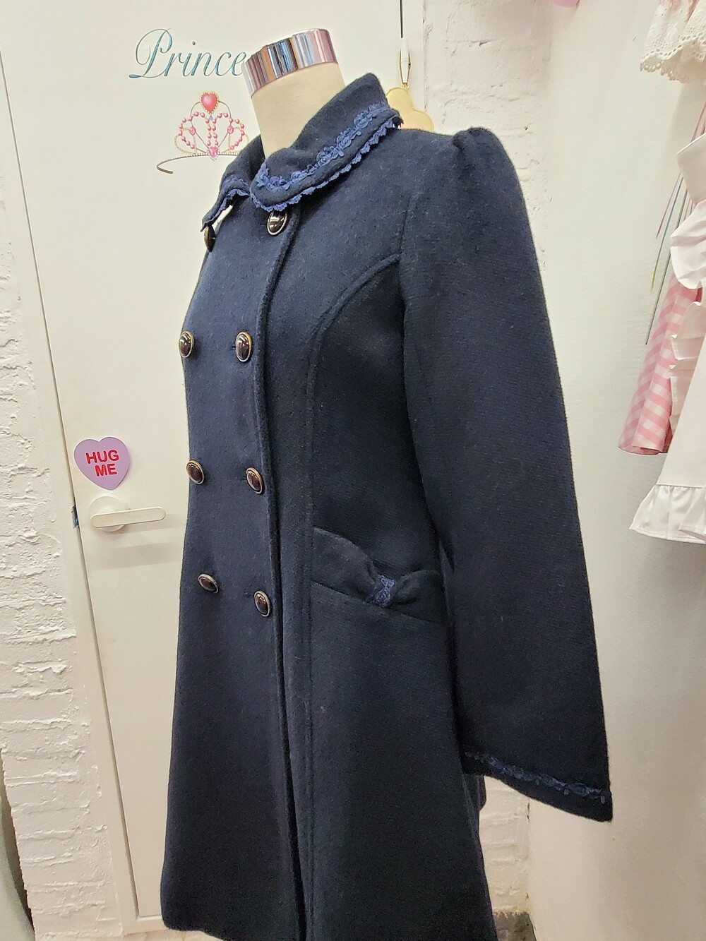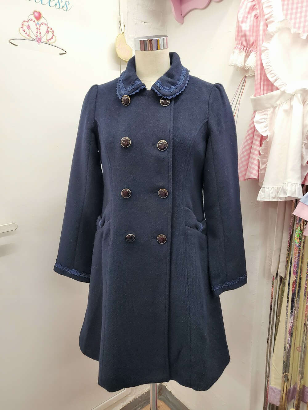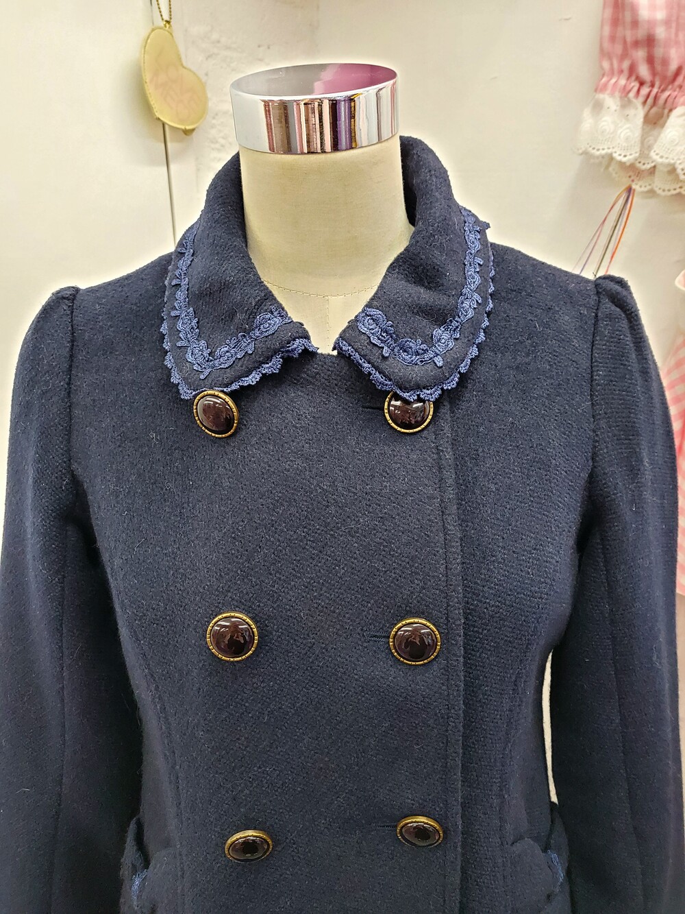 axes femme navy lace double coat
