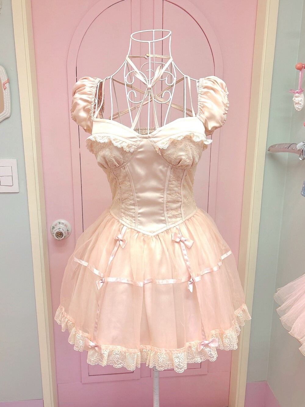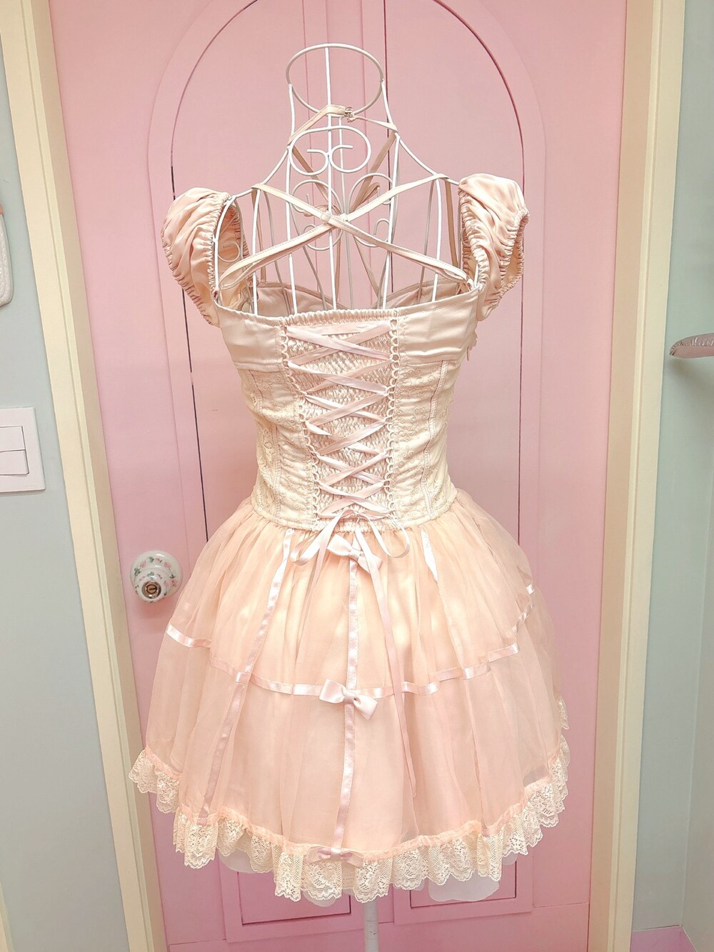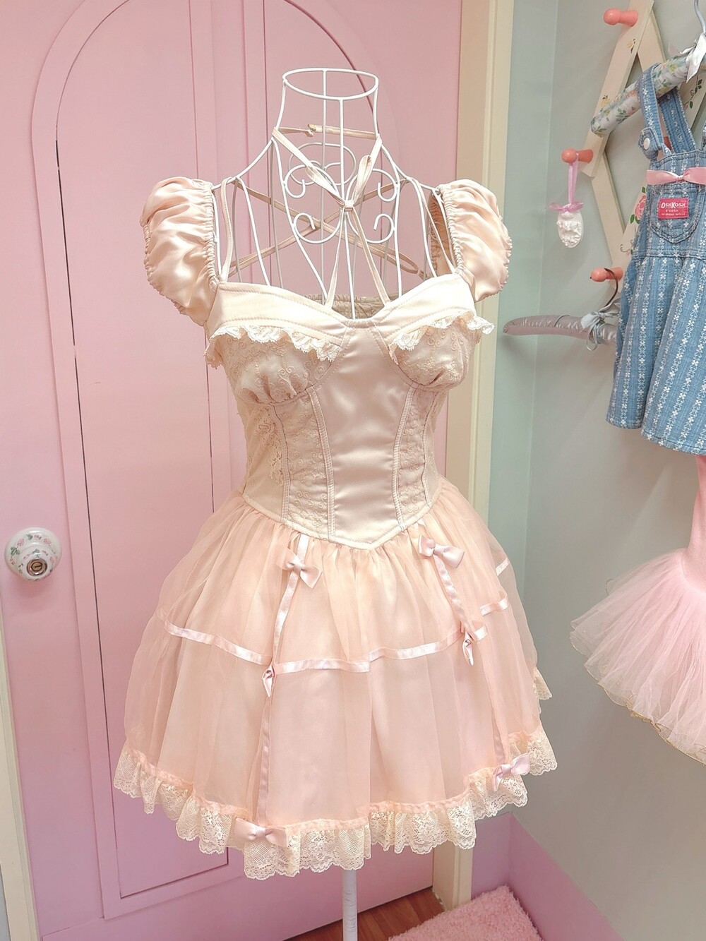 여리여리한 발레코어 느낌의 사랑스러운 미니 드레스입니다♡。