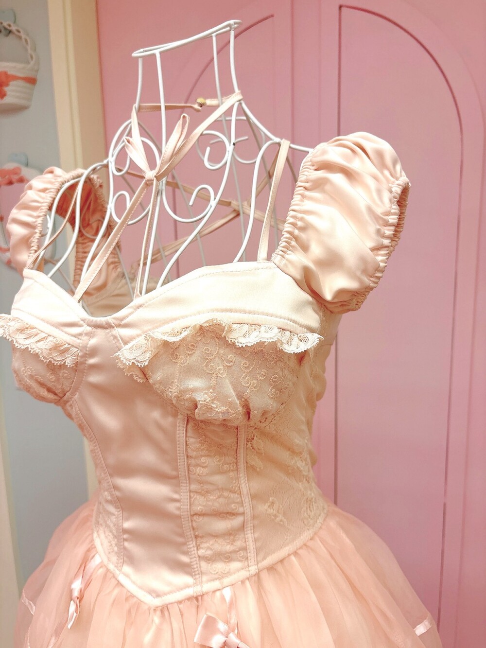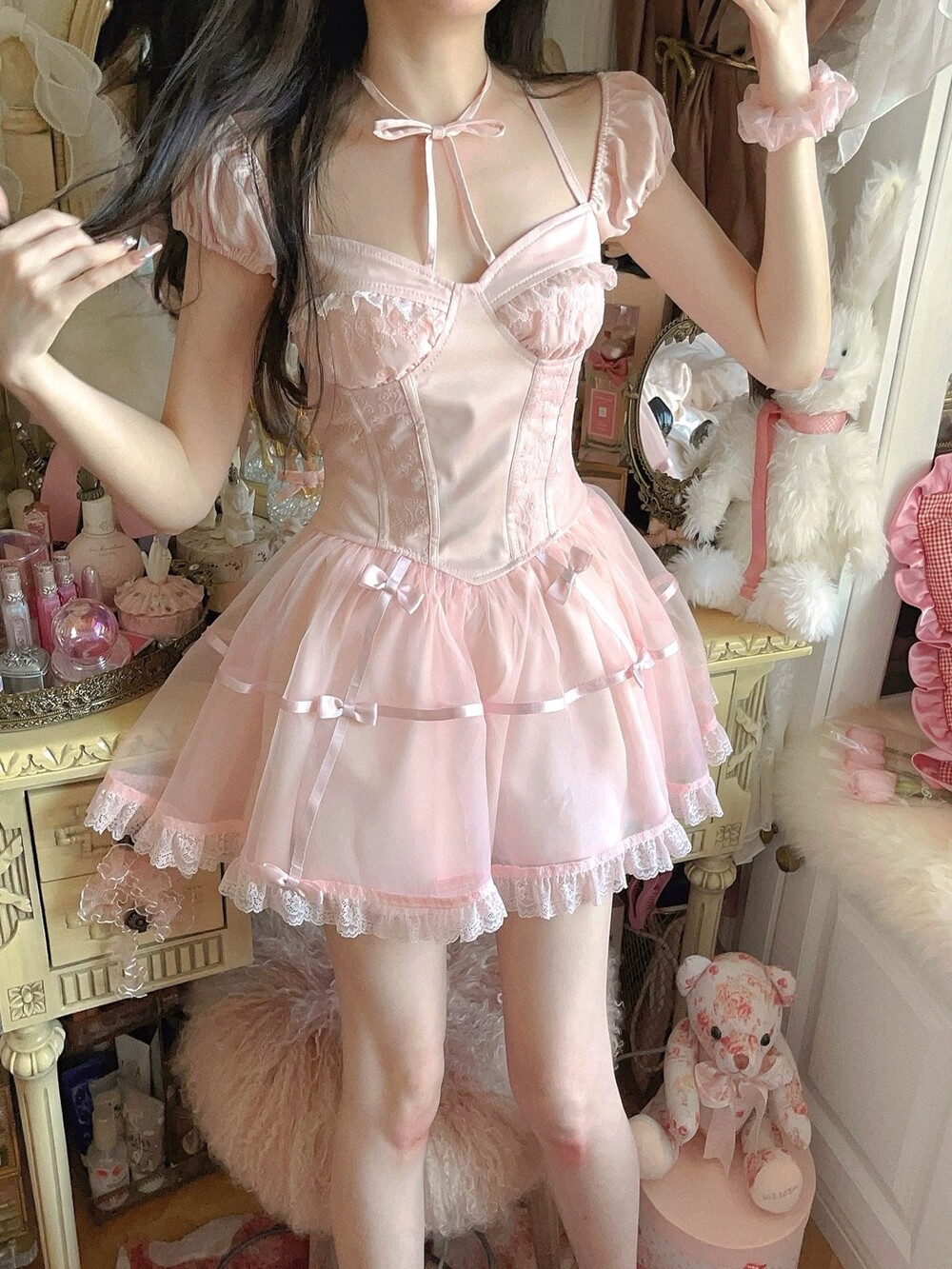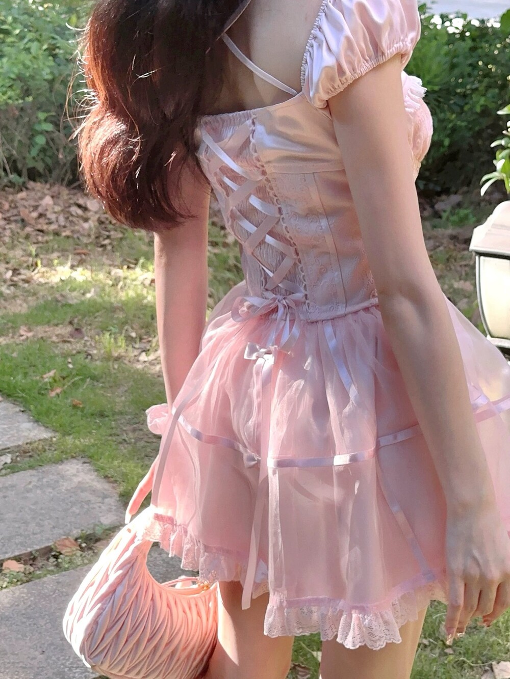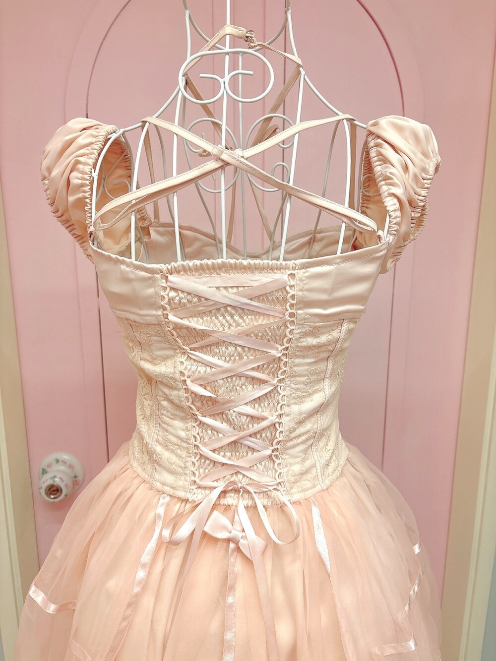 여리여리한 발레코어 느낌의 사랑스러운 미니 드레스입니다♡。