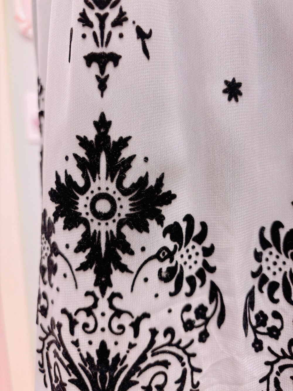 블랙 컬러의 벨벳소재로 포인트 리본과 포인트 후로킹 프린팅이 되어 있어 멋스러워요(்▿்)