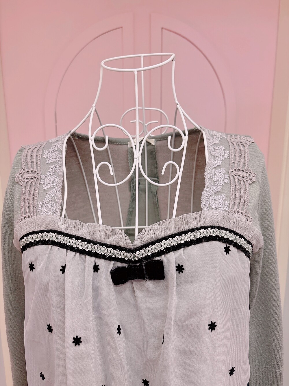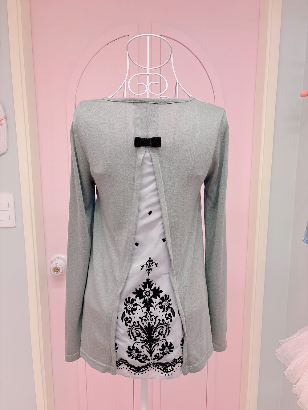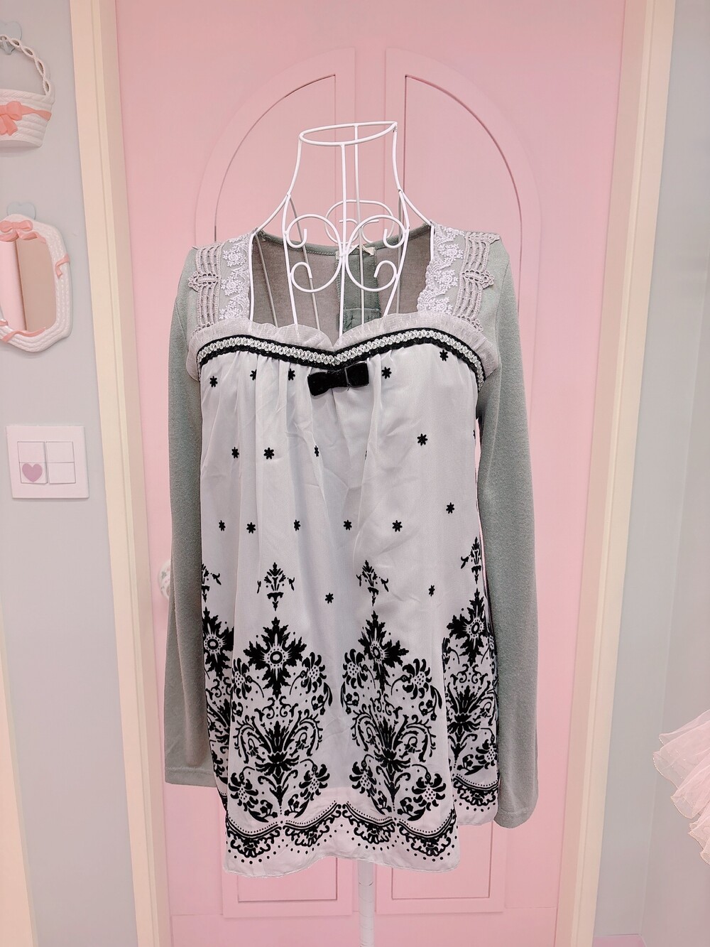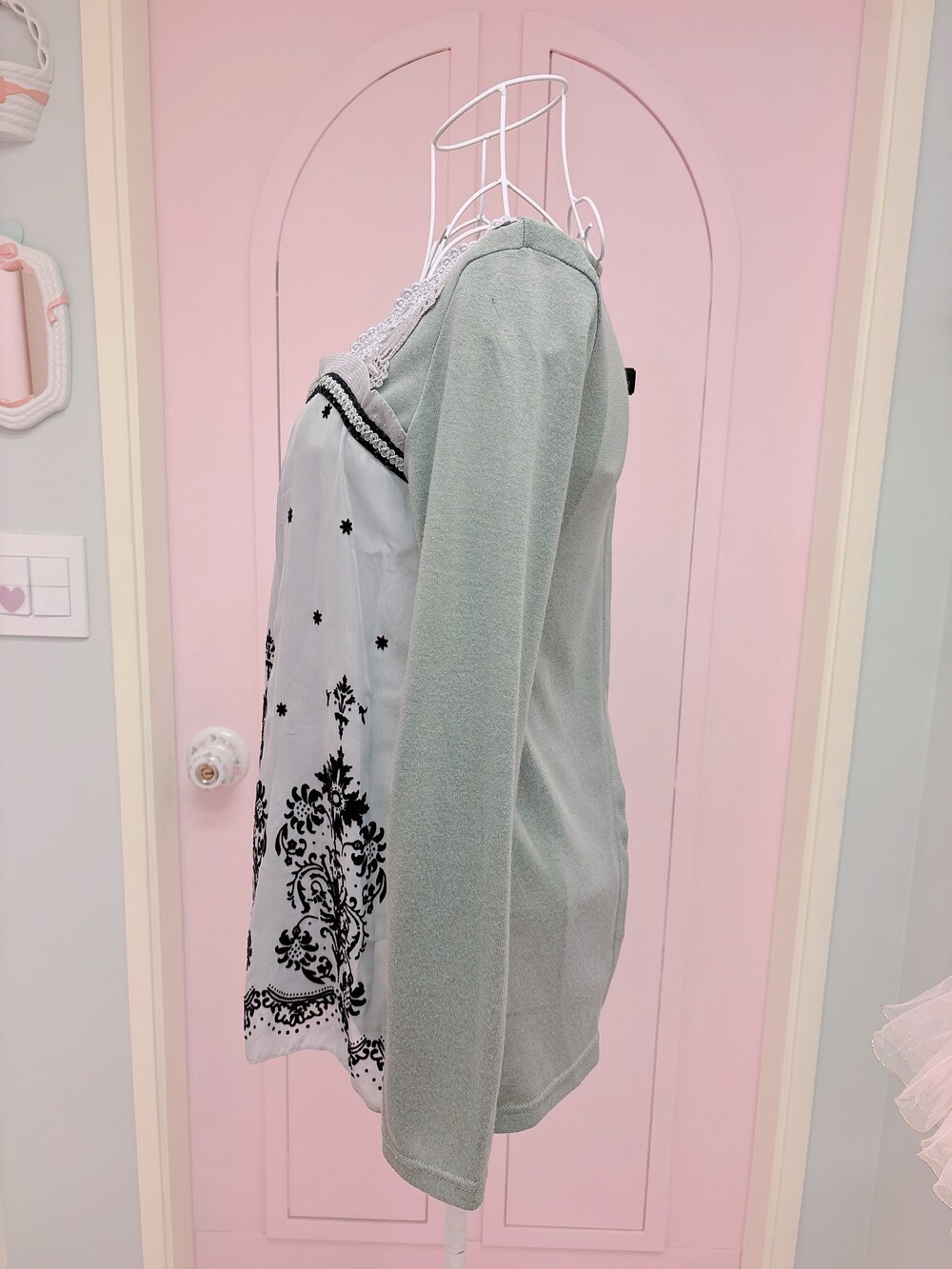 톤다운된 민트그린 컬러에 쉬폰소재가 레이어드된 튜닉 스타일의 긴소매탑이에요🖤