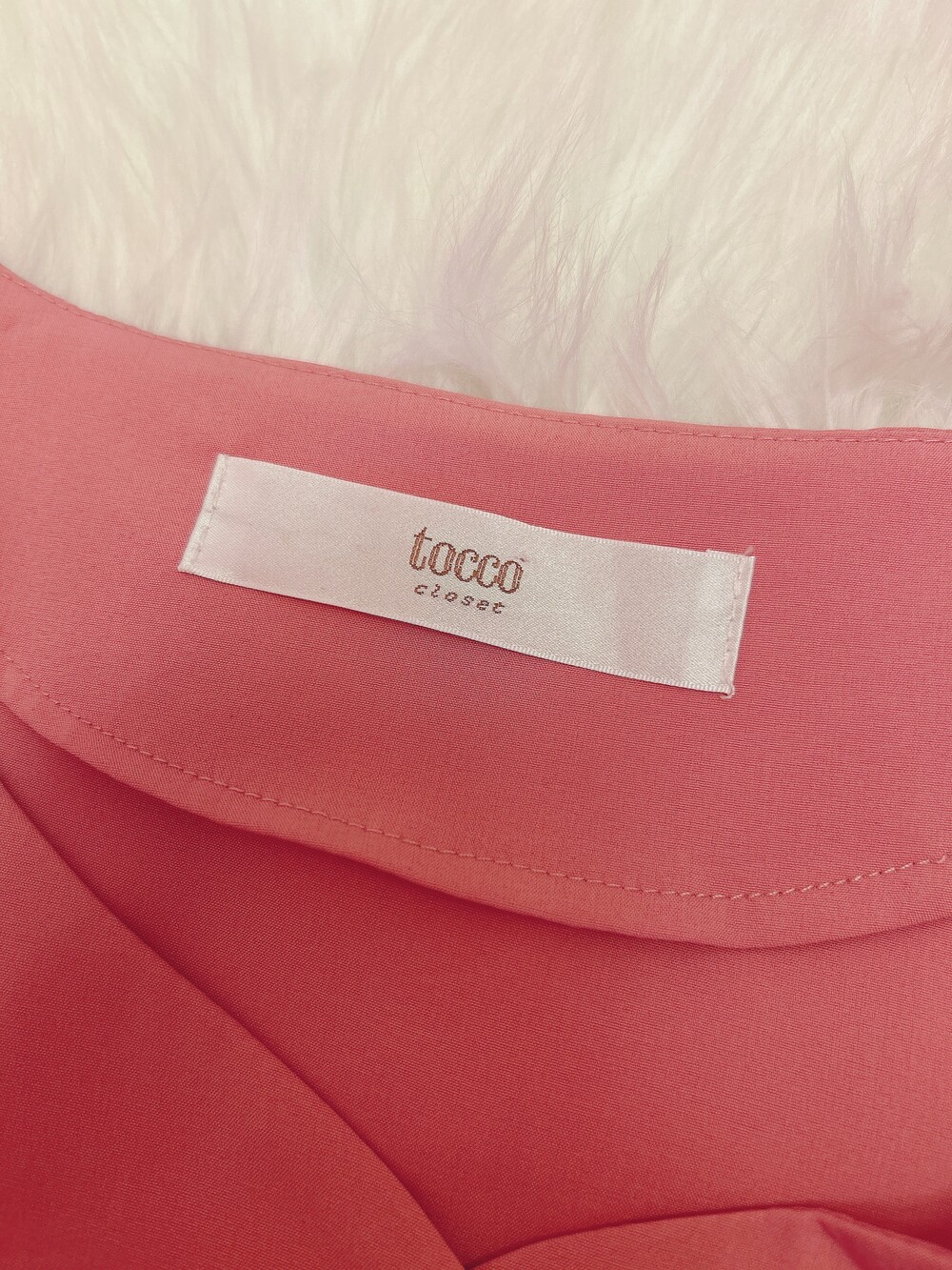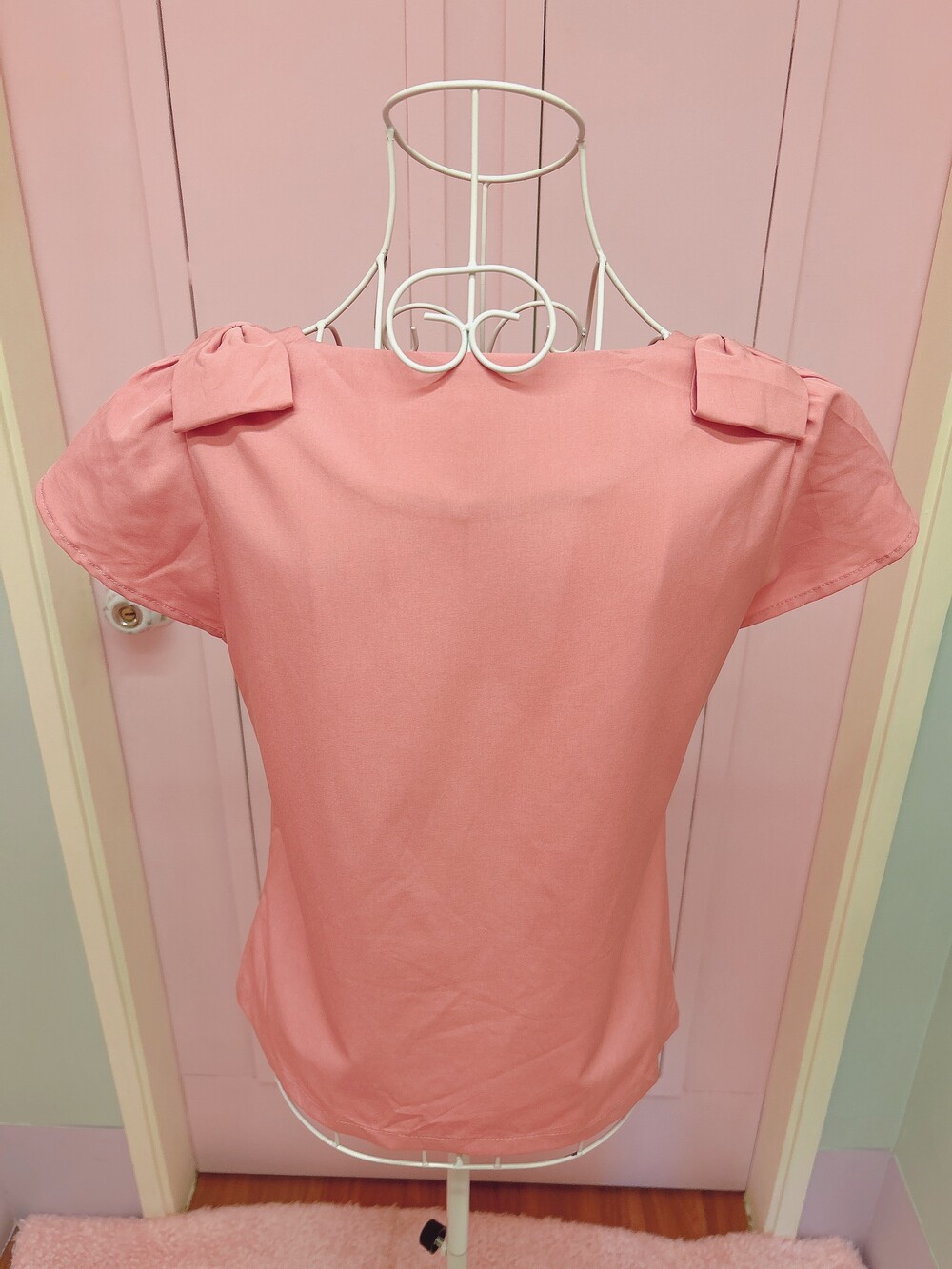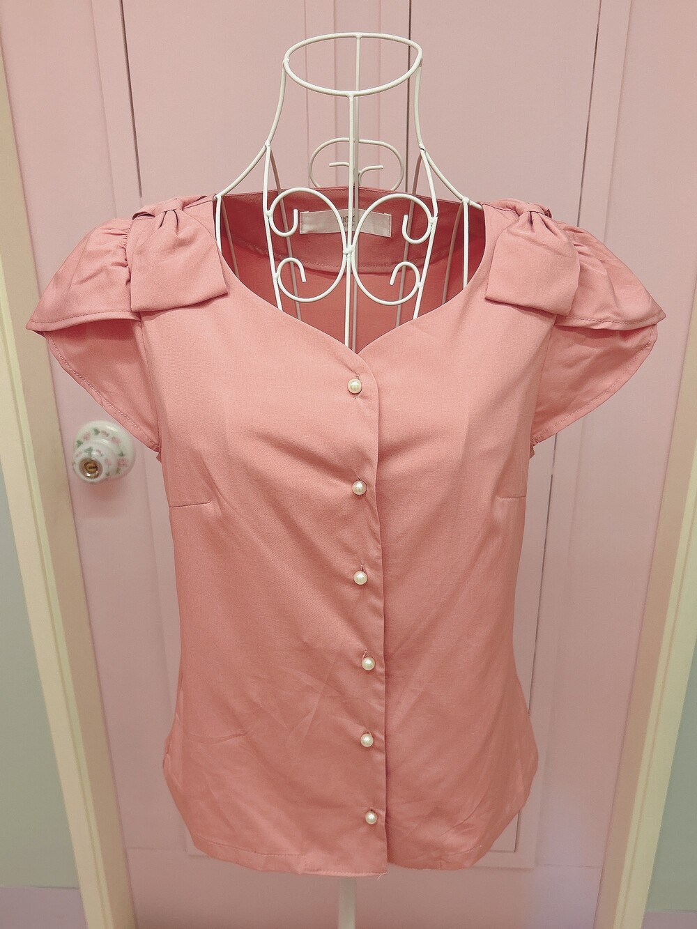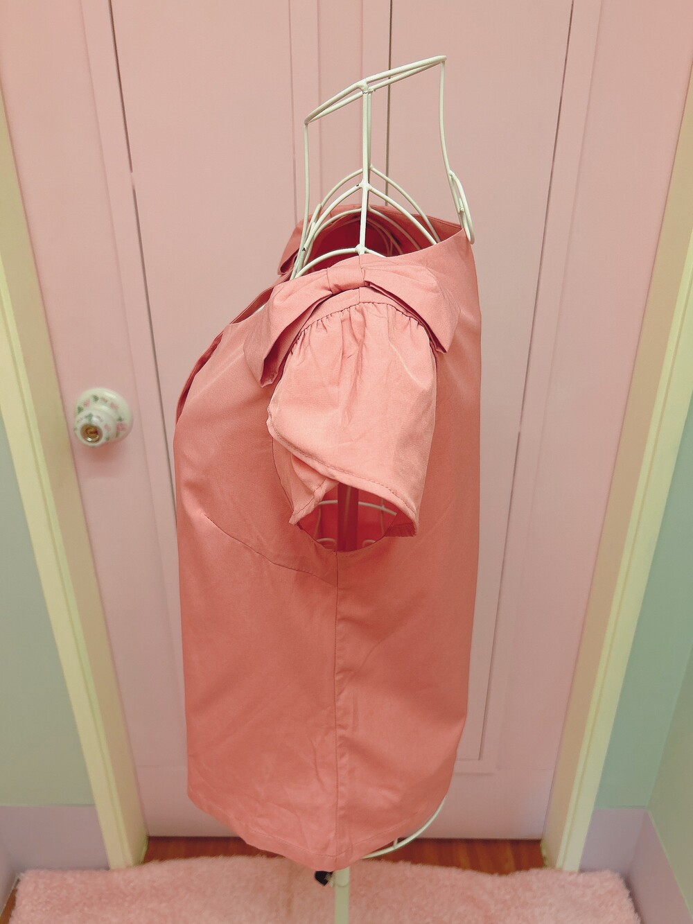코랄 핑크컬러에 넥라인과 진주 콩단추가 여성스럽고 성숙한 분위기를 주면서도 어깨에 리본 디테일이 사랑스러운 디자인🎀