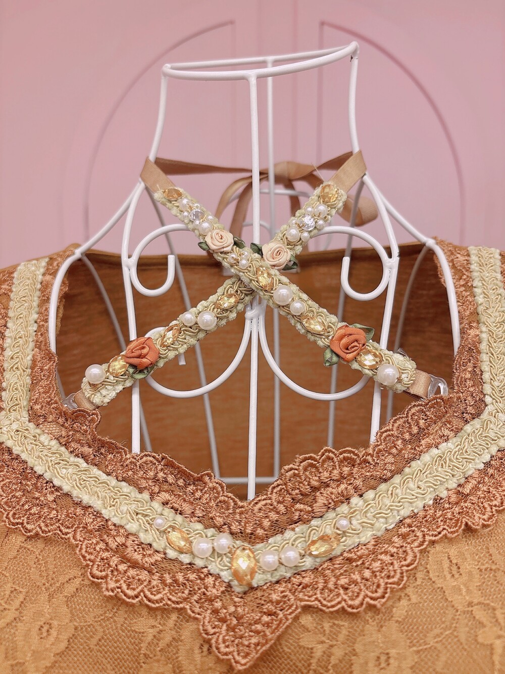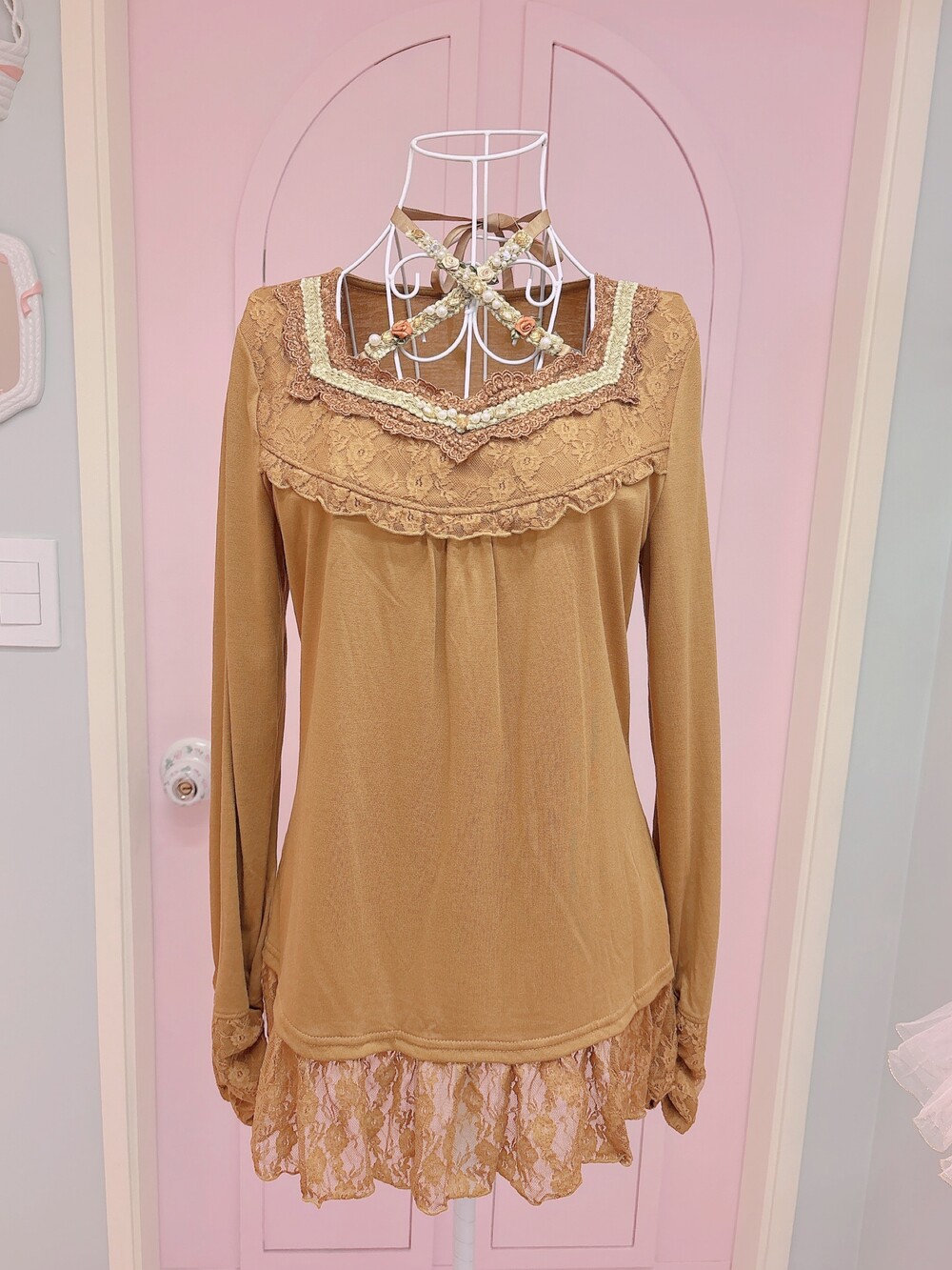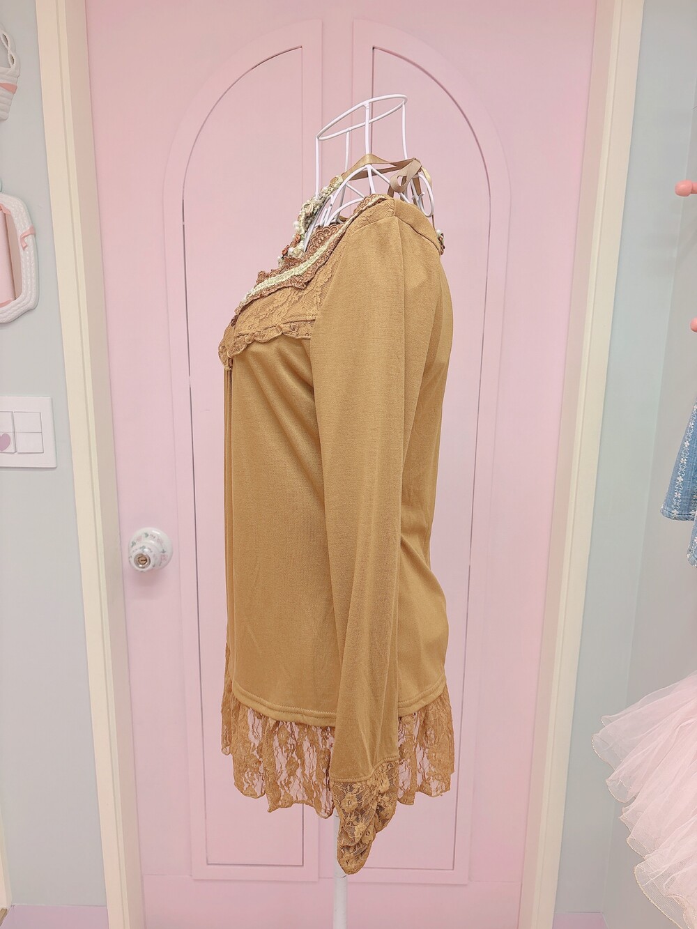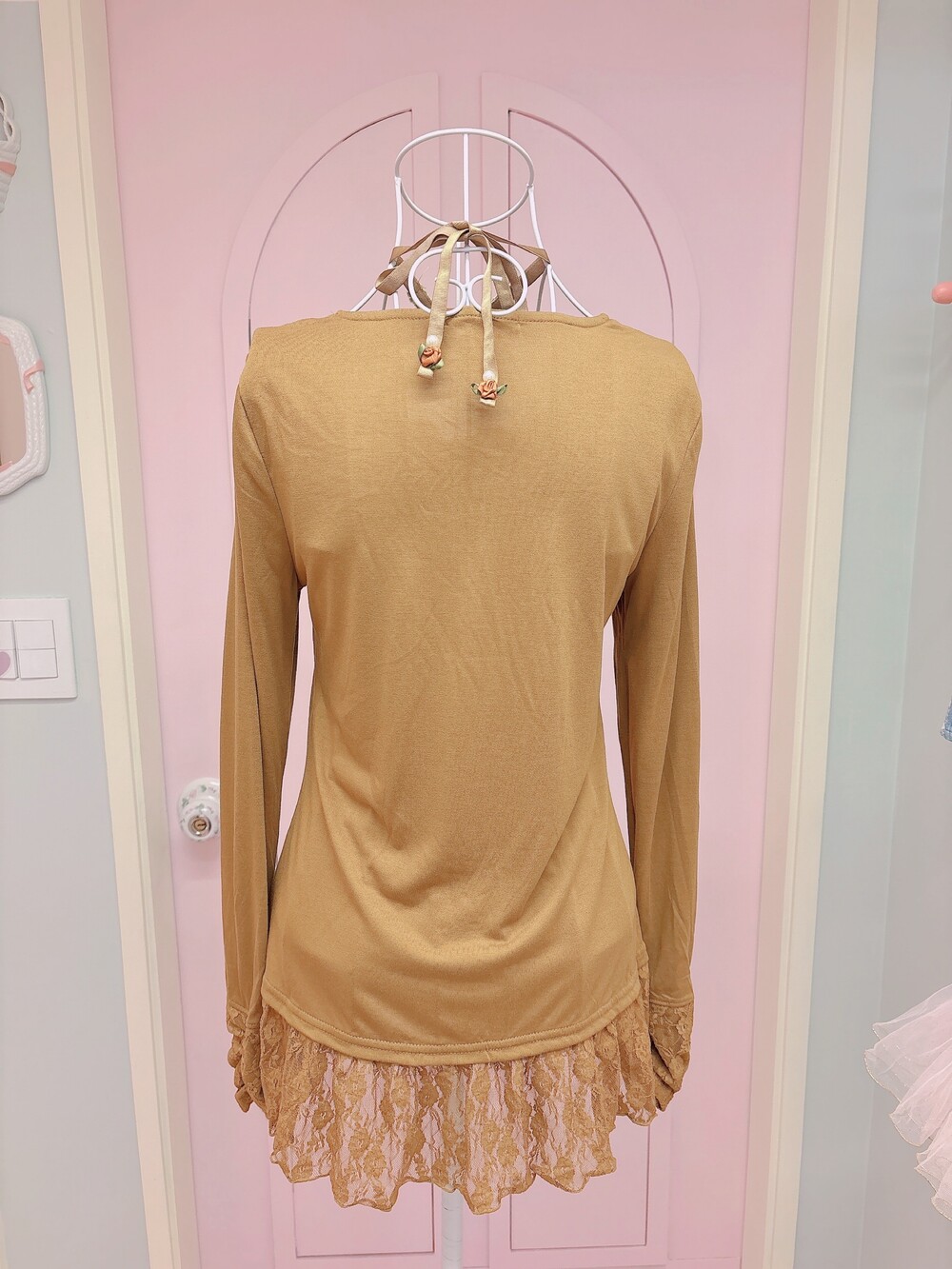 액시즈팜 브랜드 특유의 레이스 디테일과 스트랩의 꽃과 진주와 큐빅장식들이 조화롭게 믹스되어 있는 예쁜 디자인의 긴소매 탑이에요💐