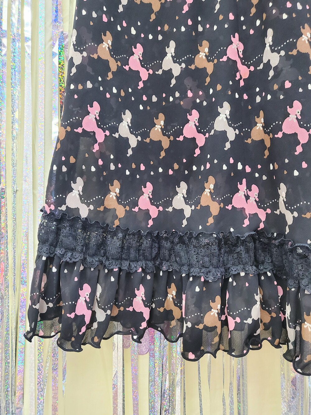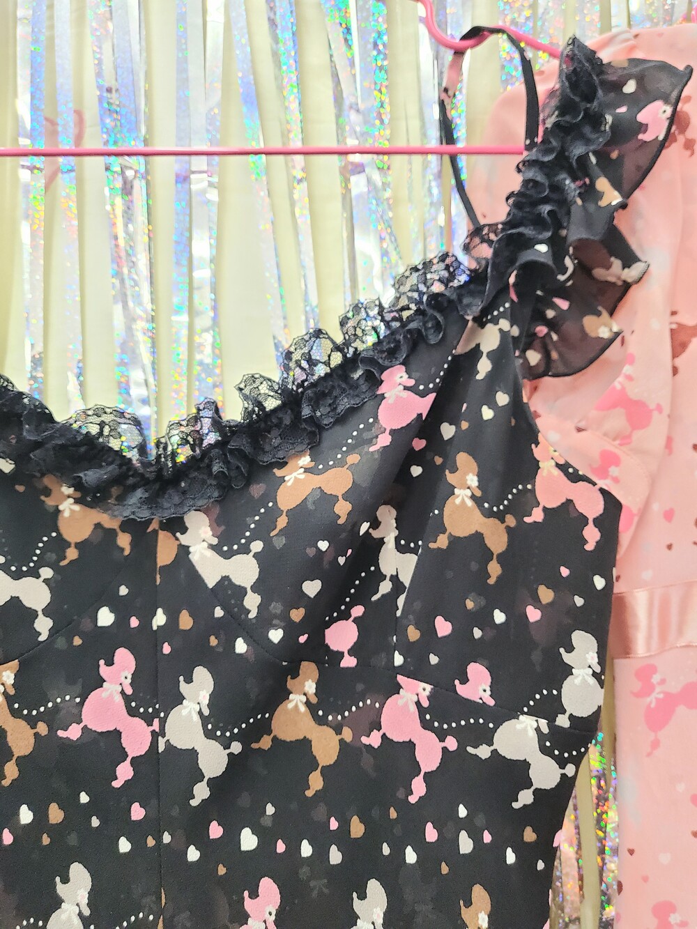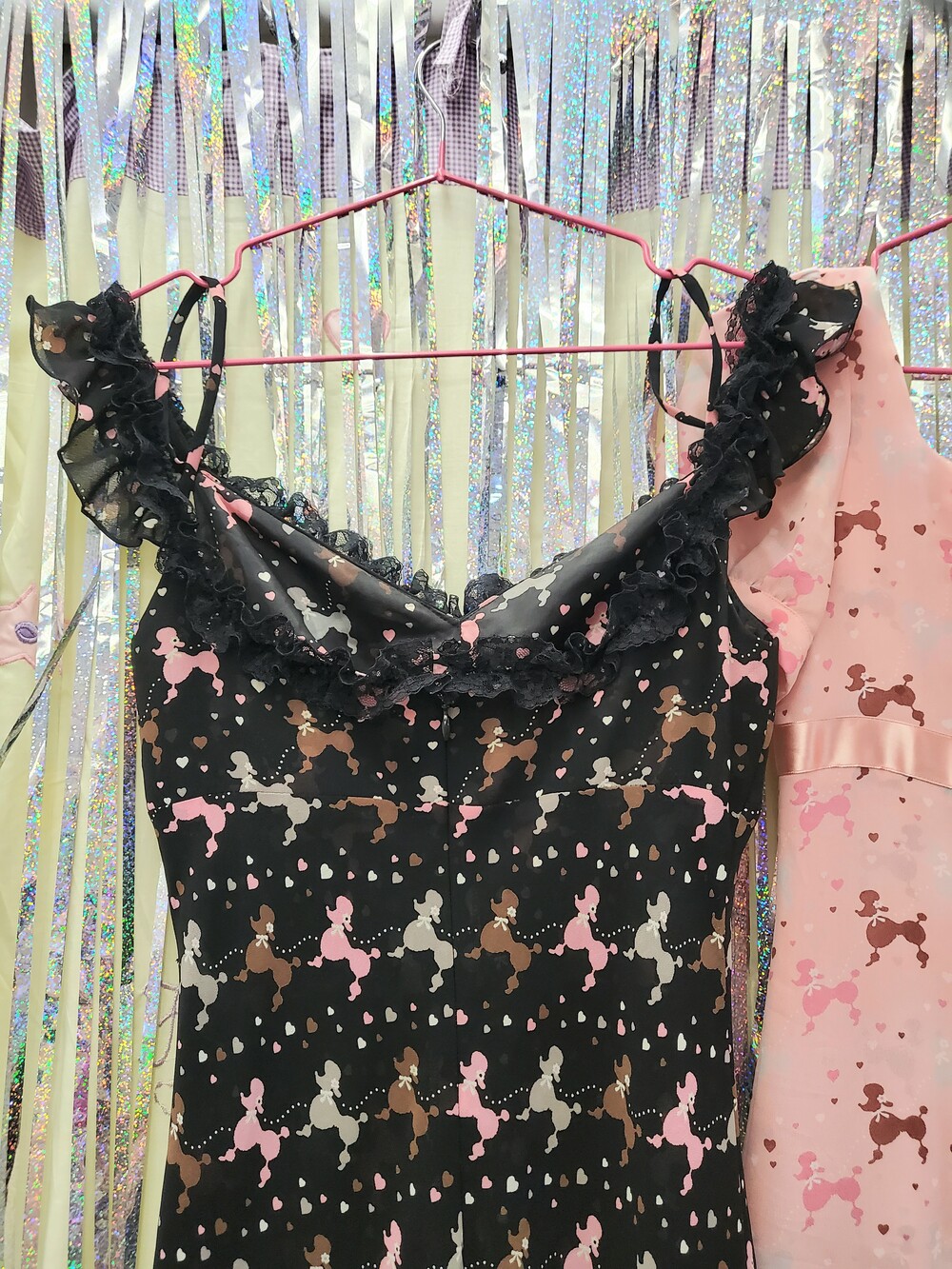 귀여운 푸들하트 프린팅의 레이스프릴 슬립드레스입니다˃ᴗ˂