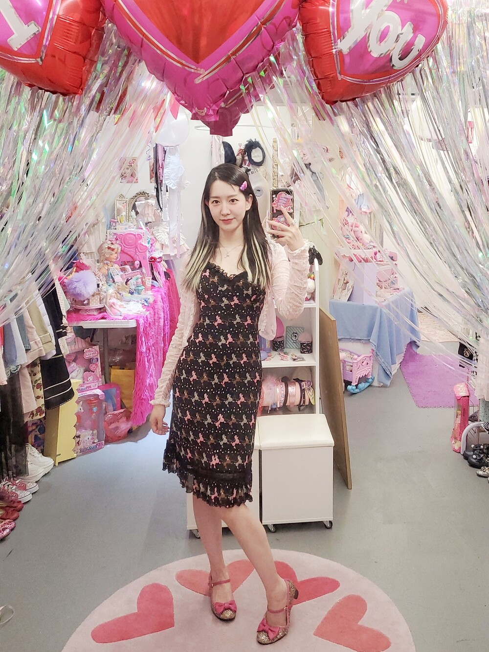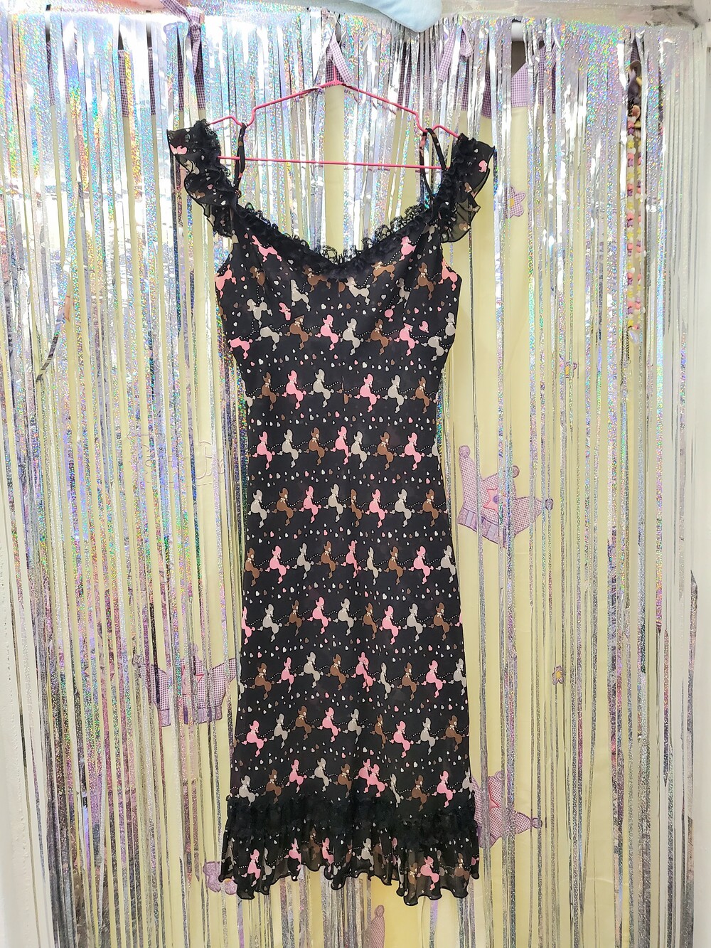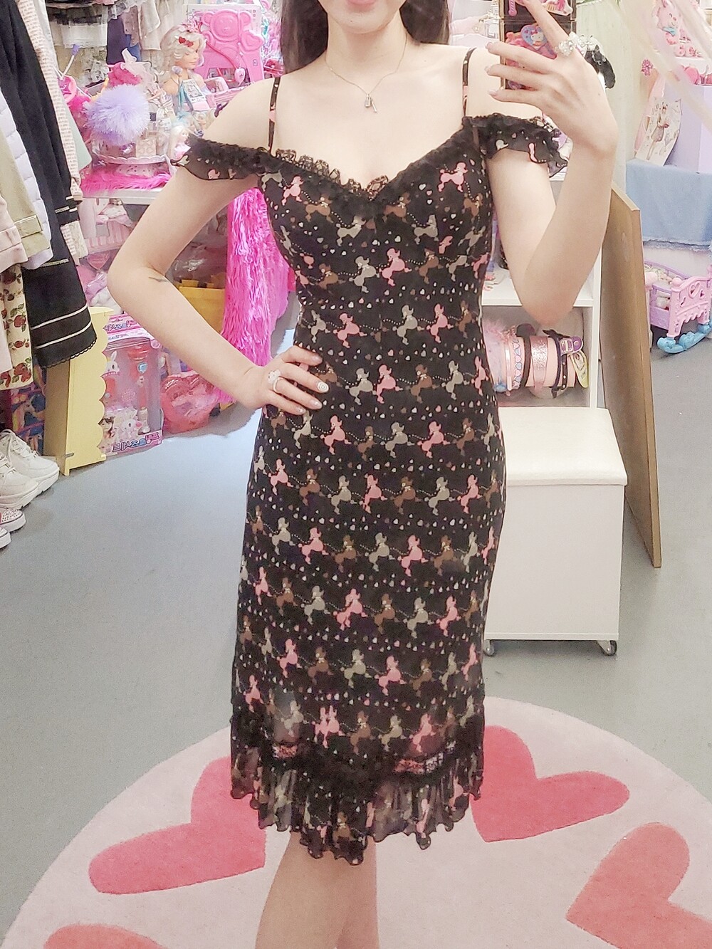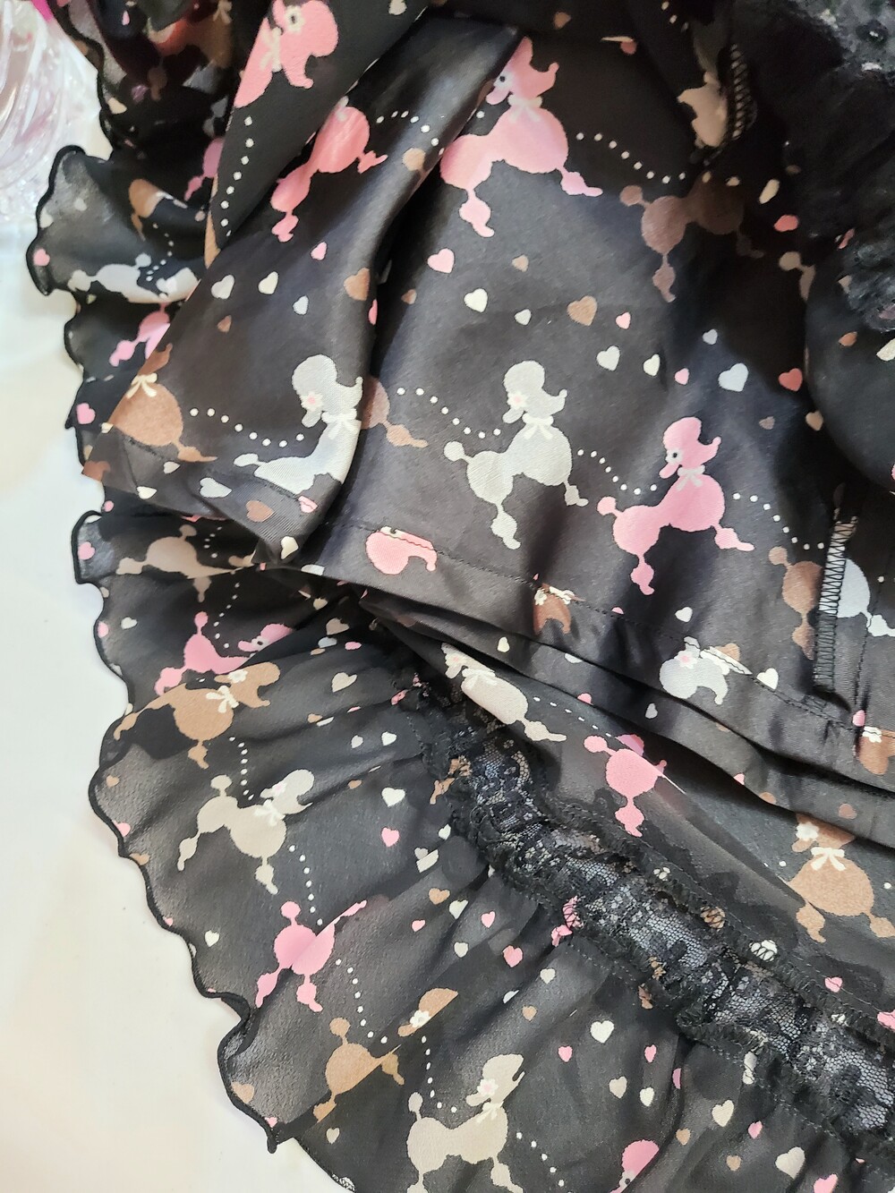 귀여운 푸들하트 프린팅의 레이스프릴 슬립드레스입니다˃ᴗ˂